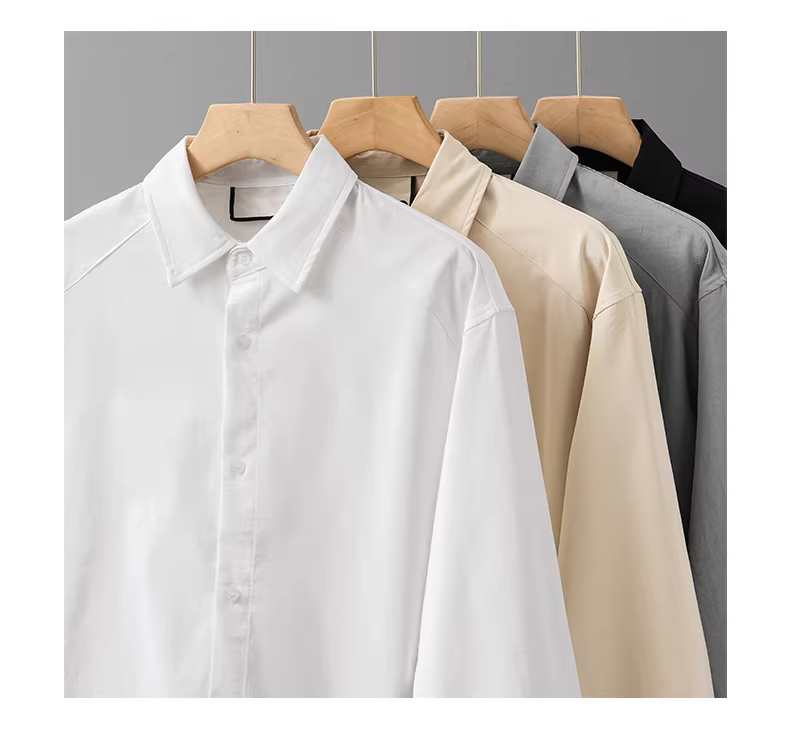 - Áo sơ mi dài tay giặt cát hạng nặng dành cho nam, mùa xuân, cảm giác cao cấp, áo sơ mi trắng rộng, áo khoác sơ mi cổ bẻ thông thường dành cho người đi làm.