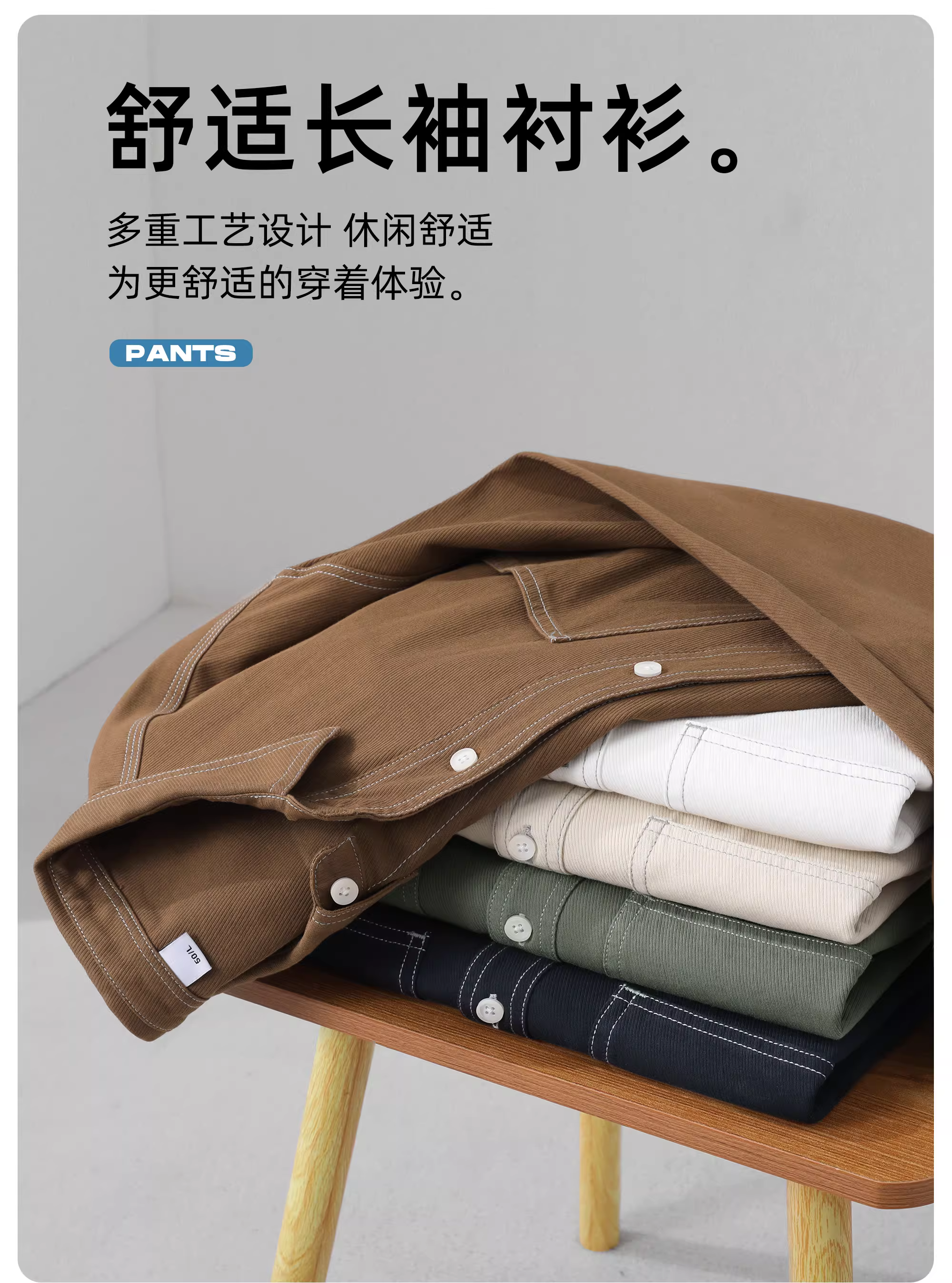 - Áo sơ mi dài tay nam JIEYI chất liệu cotton nguyên chất, có đường may tương phản và kiểu dáng vintage được xử lý giặt mềm, xu hướng áo sơ mi công nhân hoàn toàn bằng cotton.