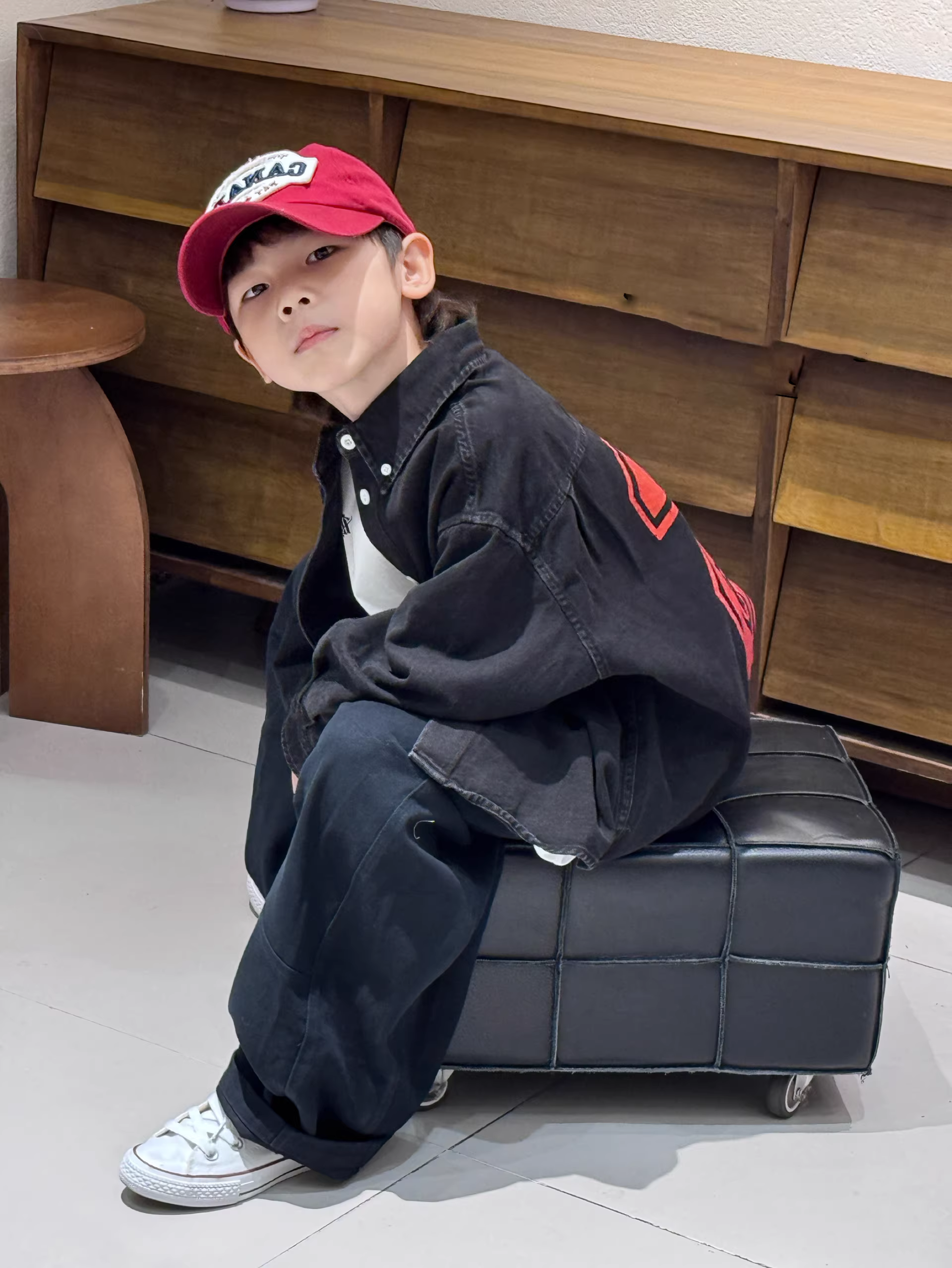 - Áo sơ mi denim bé trai xuân thu 2025 kiểu mới trẻ trung, cổ trụ, thời trang, tay dài, dáng rộng, thoải mái