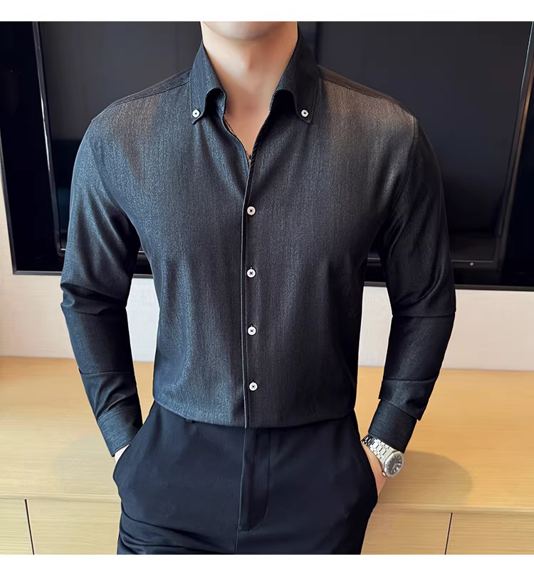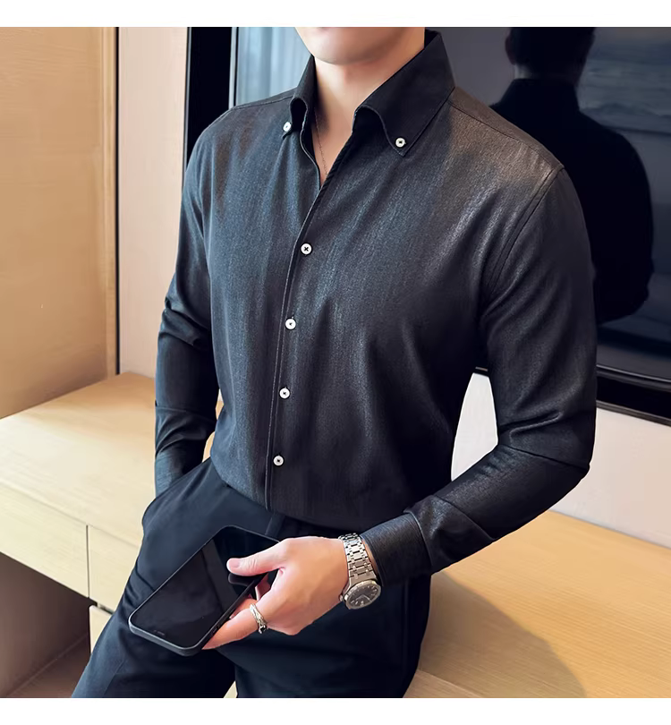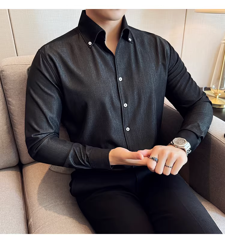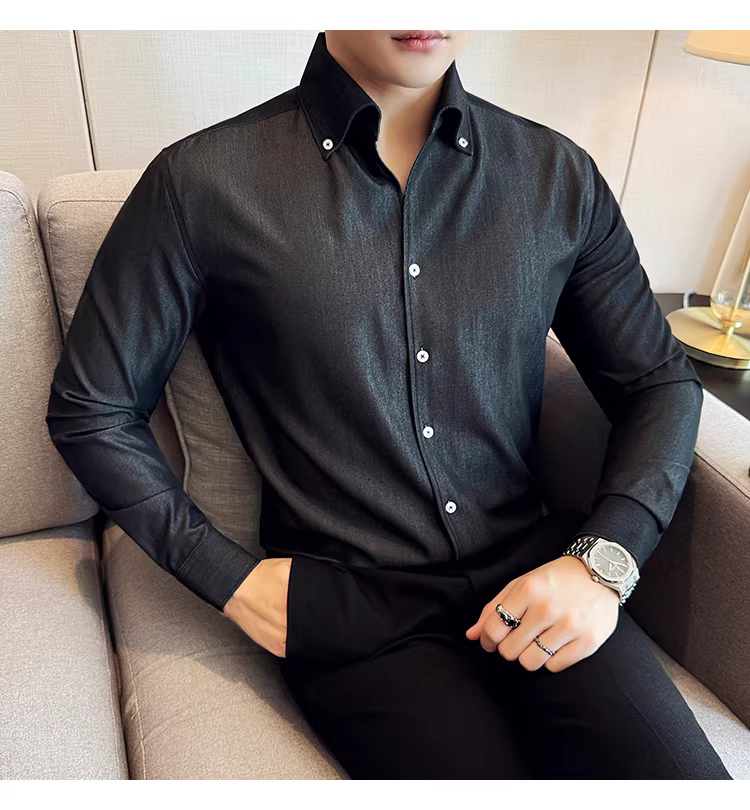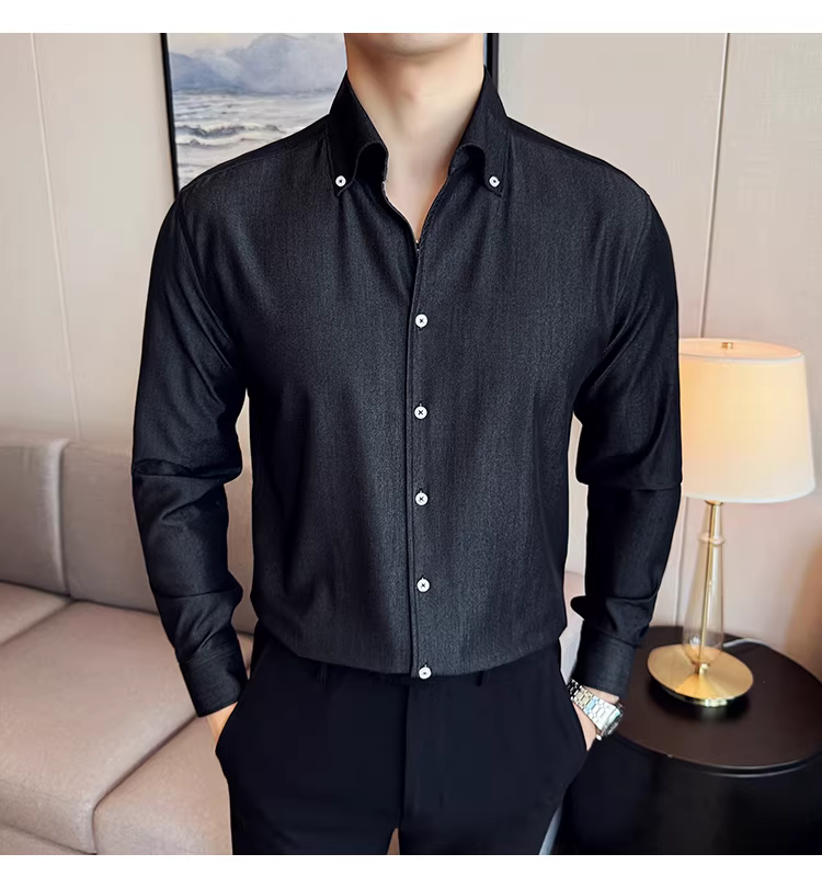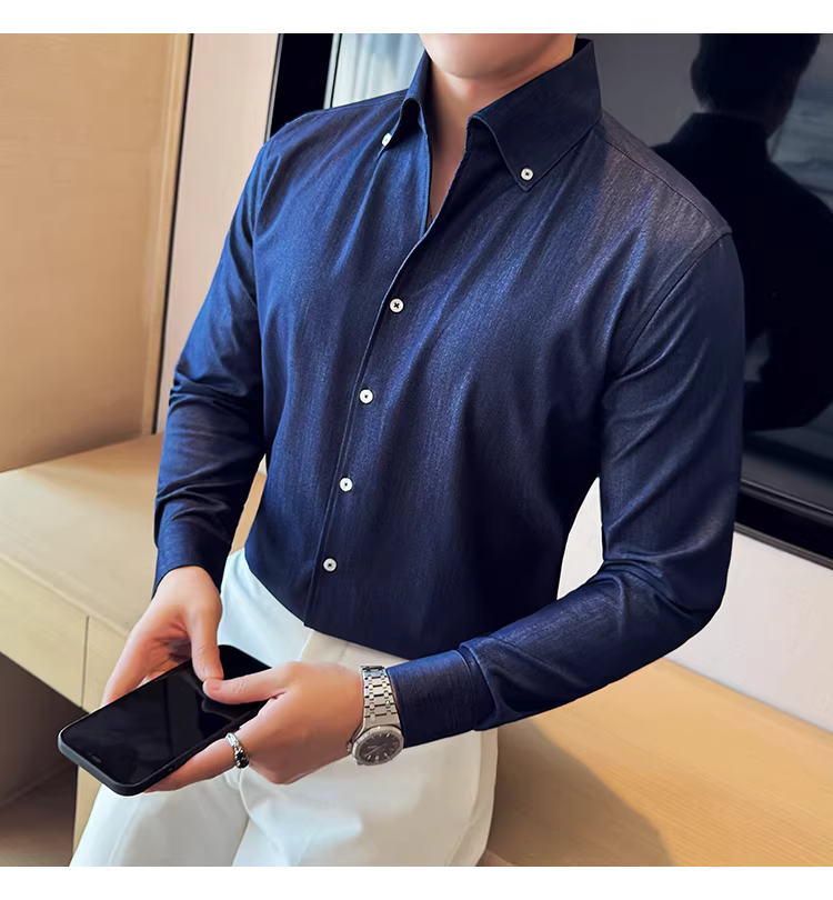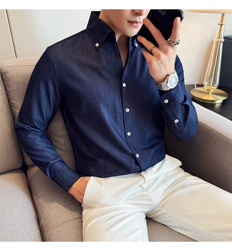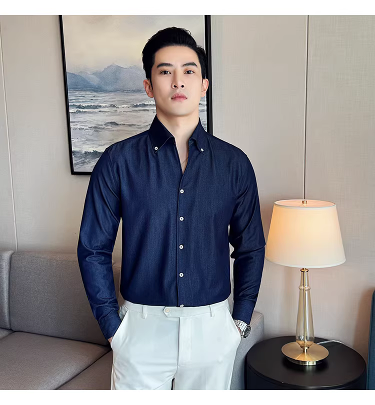 - Áo sơ mi denim cao cấp dành cho nam, dài tay, kiểu dáng xuân thu mới, thời trang, thon gọn, đẹp trai, lịch sự, áo sơ mi đa năng