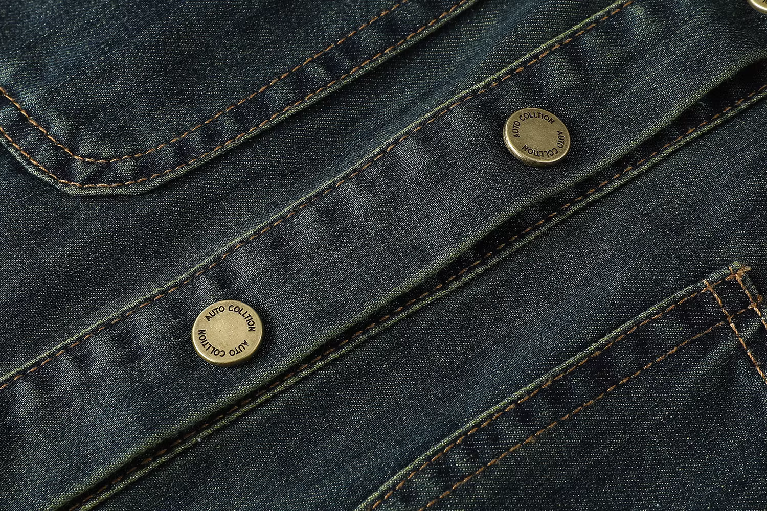 - Áo sơ mi denim cổ điển kiểu Mỹ dành cho nữ, phong cách mùa hè mới, thời trang phong cách Hồng Kông, áo khoác ngắn đa năng với tay áo nhỏ xòe.