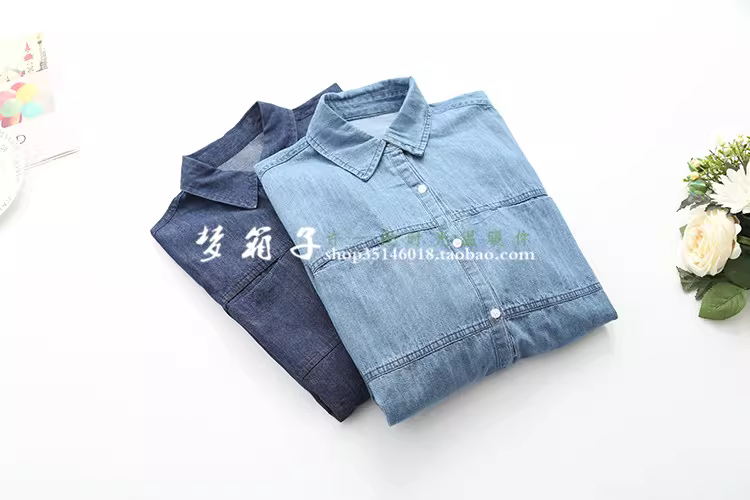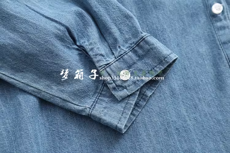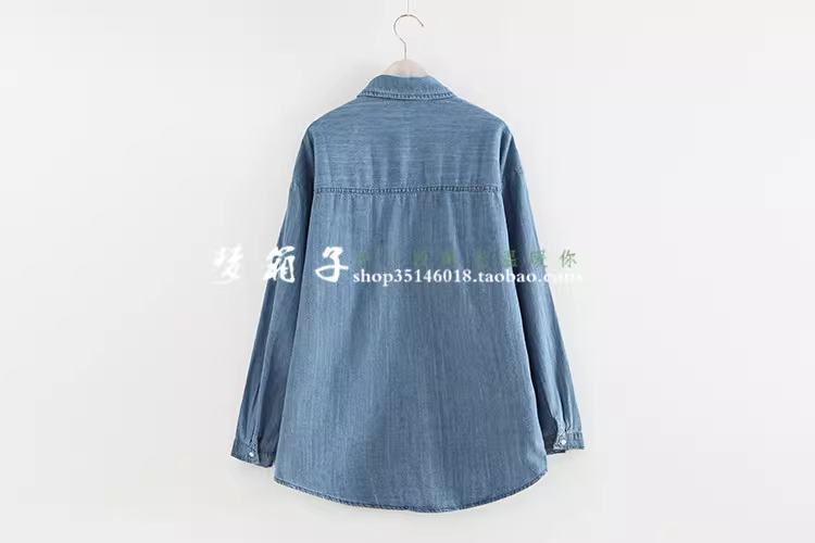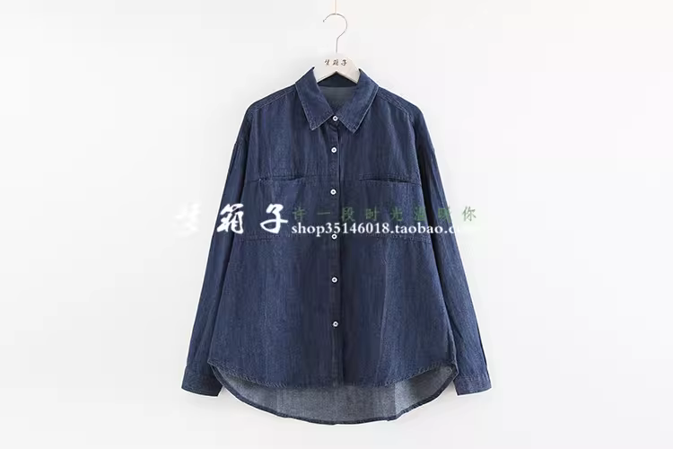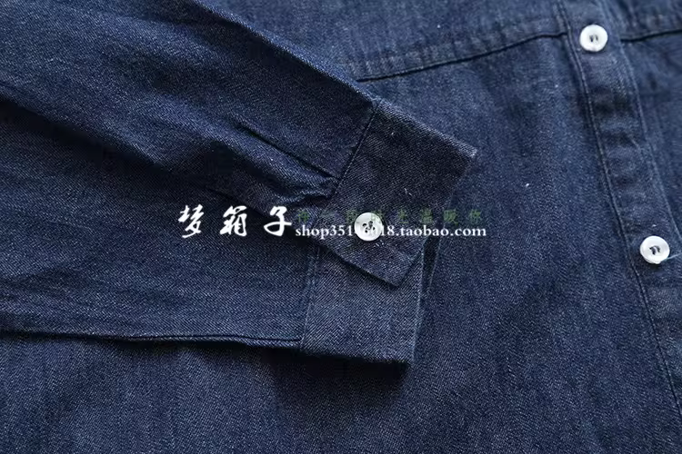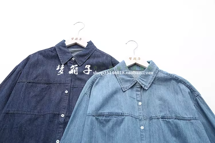 - Áo sơ mi denim màu trơn hai túi dáng rộng cổ trụ tay dài đa năng Dream Box Thu 2024 dành cho nữ