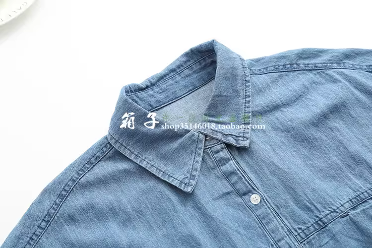棉质牛仔面料,清新纯色,胸前大口袋
