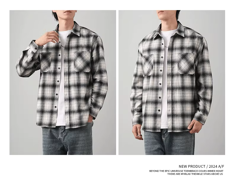 Áo sơ mi flannel kẻ caro nam 400G, tay dài, mùa thu, dáng rộng, chất liệu cotton nguyên chất, kiểu dáng cổ điển, chất liệu vải chải mềm