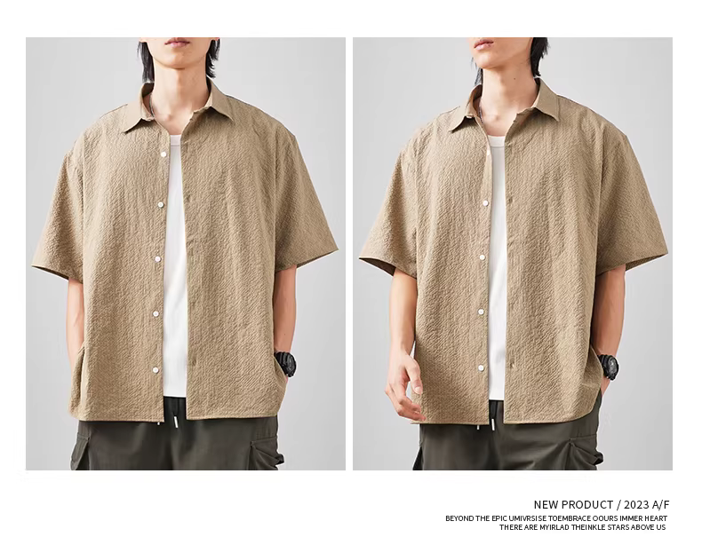 - Áo sơ mi gạc bong bóng mát mẻ dành cho nam, tay ngắn, phong cách mới mùa hè 2024, kiểu dáng retro rộng rãi, áo sơ mi cao cấp, áo khoác nhẹ