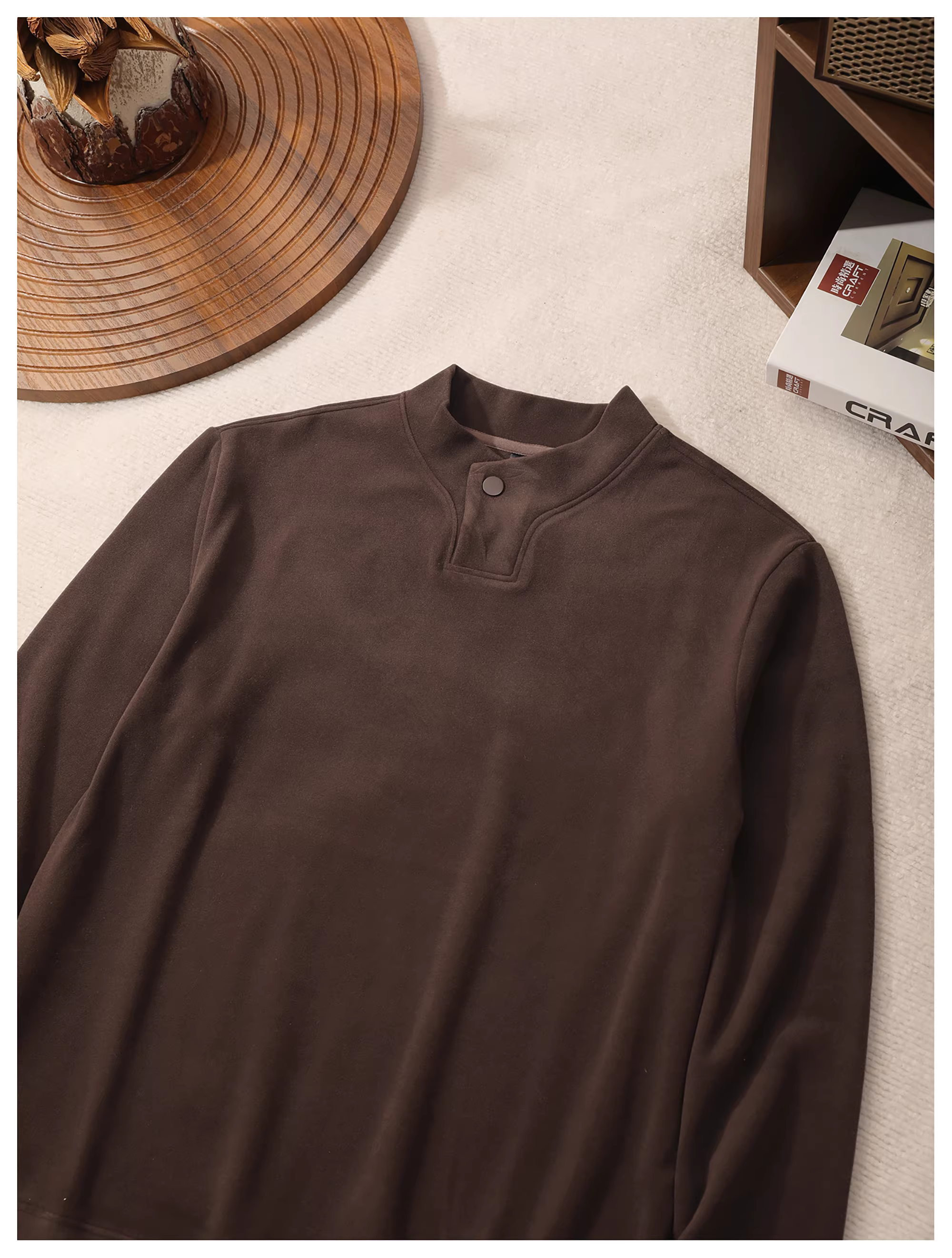 Áo sơ mi giữ nhiệt cổ cao nửa cổ JIEYI dành cho nam, mùa thu đông, tự sưởi ấm, màu trơn, áo thun mềm mại, cài một khuy