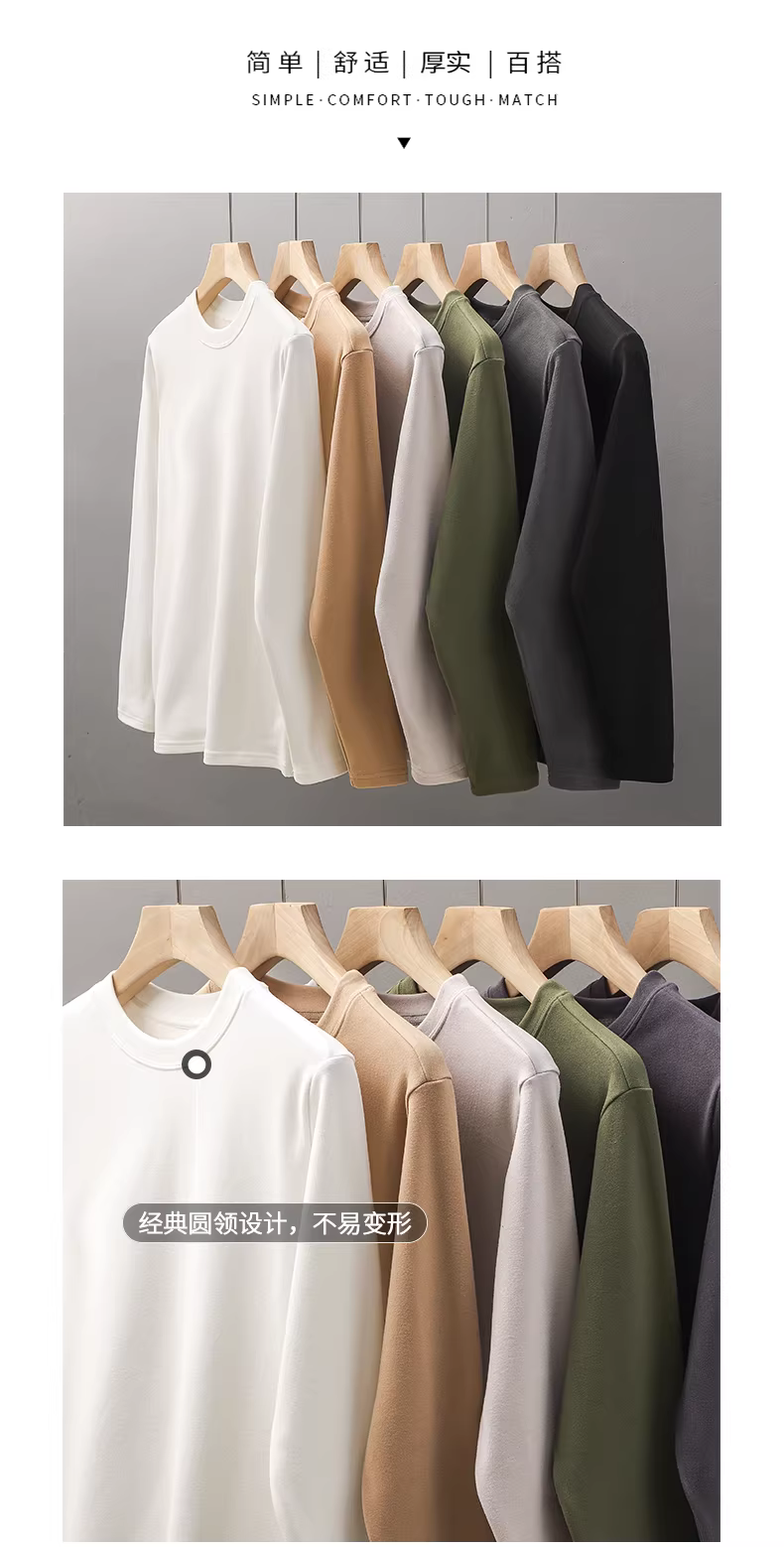 Áo sơ mi giữ nhiệt hai mặt Pure Group 350G dành cho nam, mặc bên trong mùa đông, đồ lót giữ nhiệt cổ tròn, áo thun dài tay lông cừu dày.