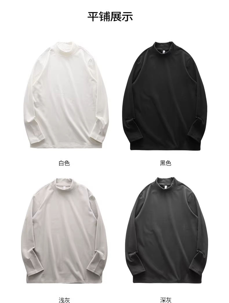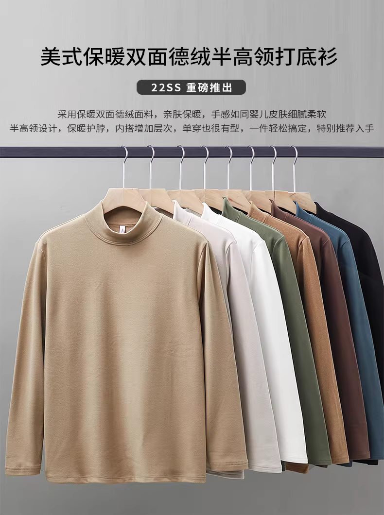 Áo sơ mi giữ nhiệt nửa cổ lọ dành cho nam giới mùa thu đông, áo nỉ hai mặt, dày dặn và ấm áp, áo thun dài tay hạng nặng 350G.