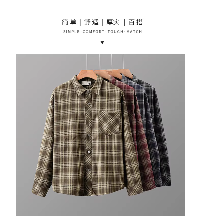- Áo sơ mi kẻ sọc flannel dày dặn Pure Group 360G dành cho nam, tay dài, áo khoác kẻ sọc dáng rộng phong cách retro Mỹ mùa thu
