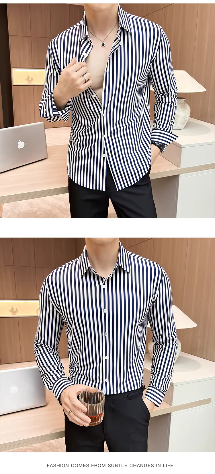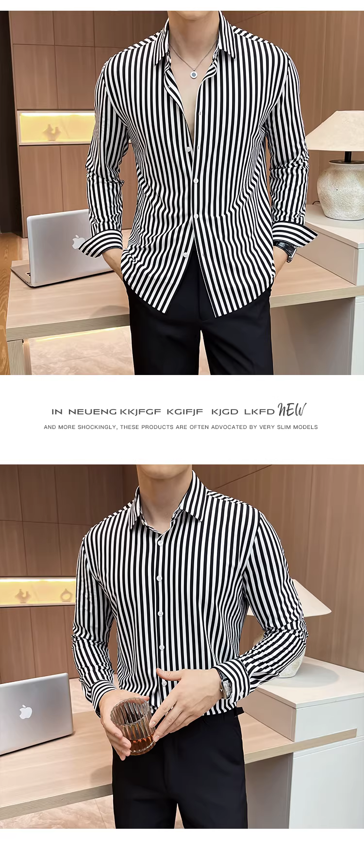 - Áo sơ mi kẻ sọc nam, tay dài, thời trang thu đông 2025, kiểu dáng ôm body, lịch sự, đa năng, dễ chăm sóc