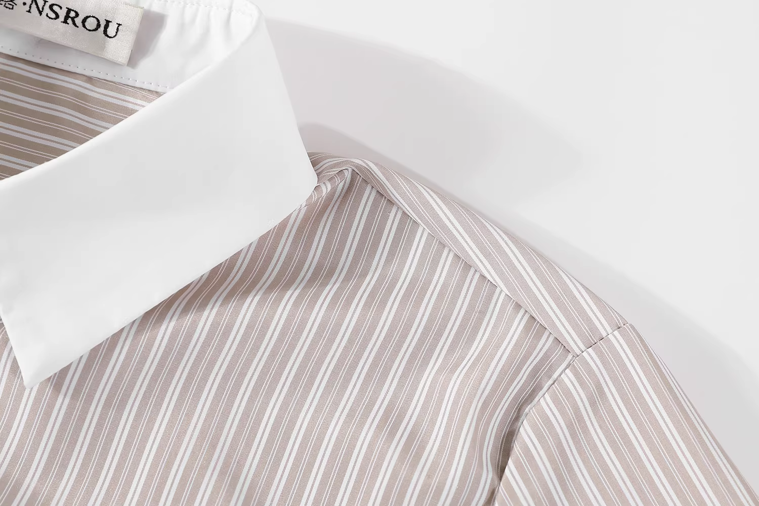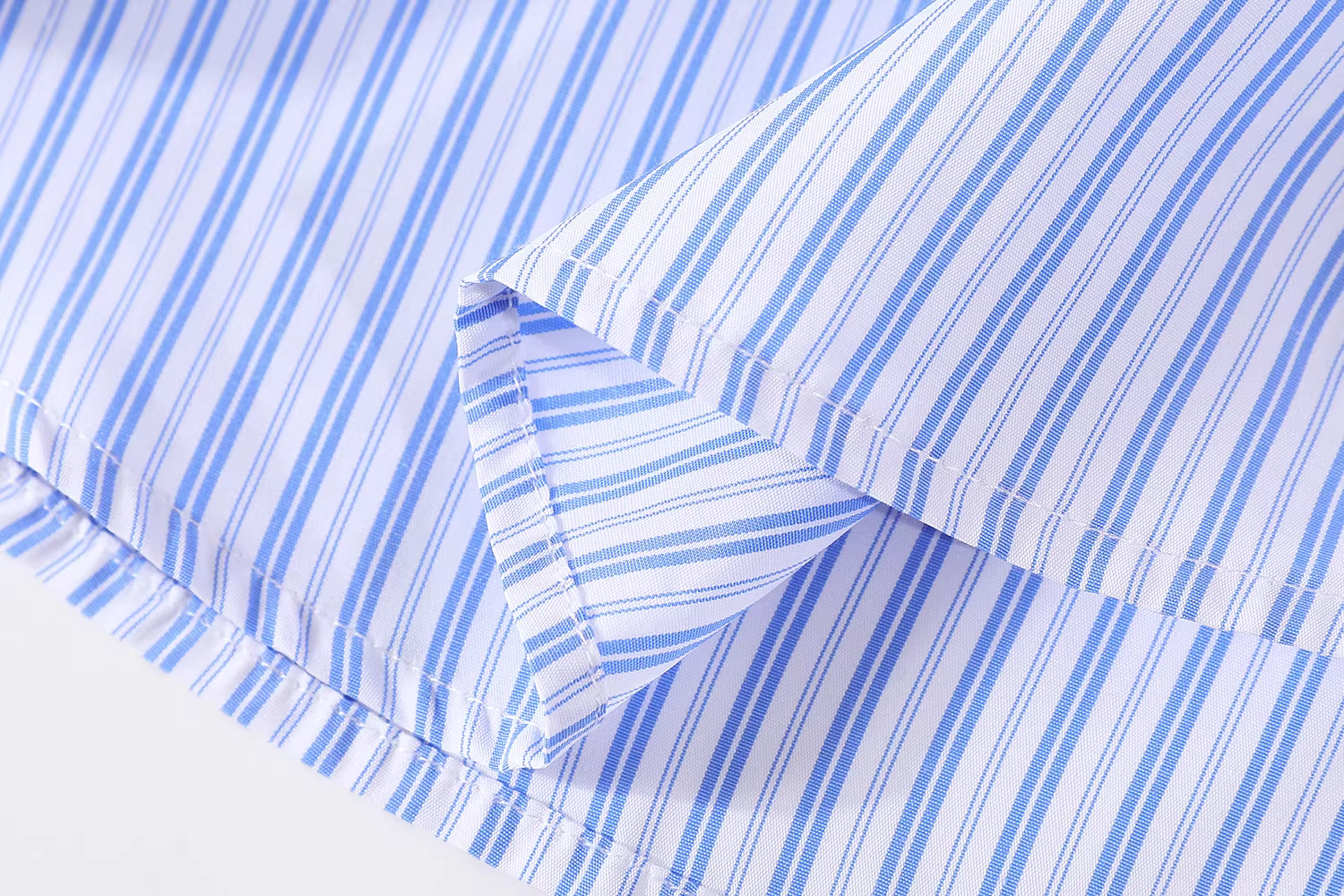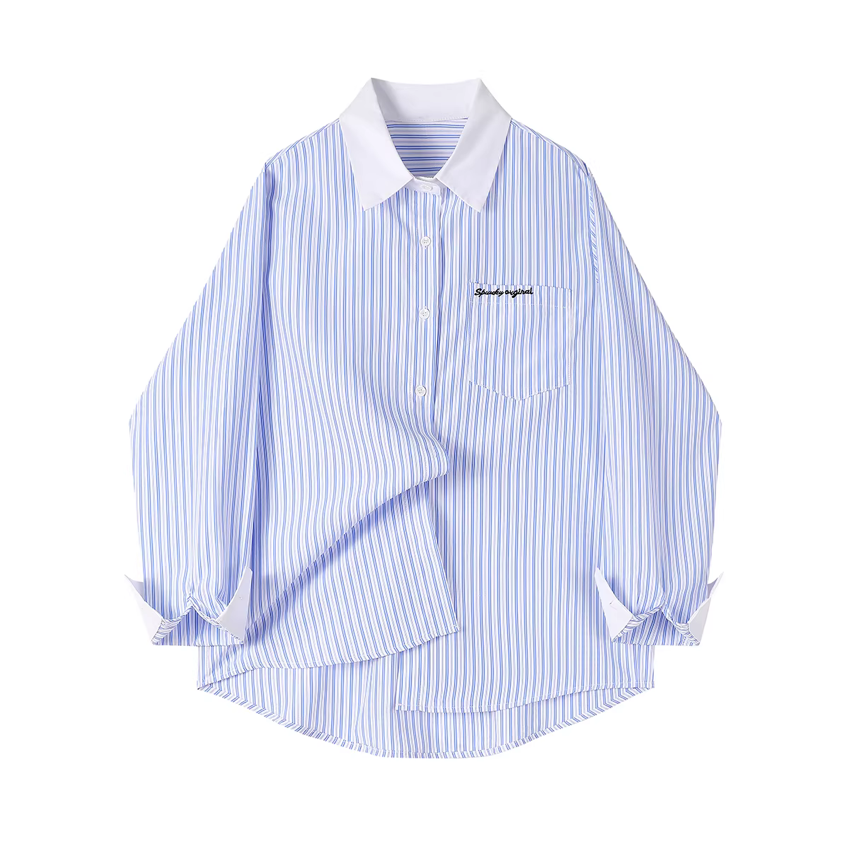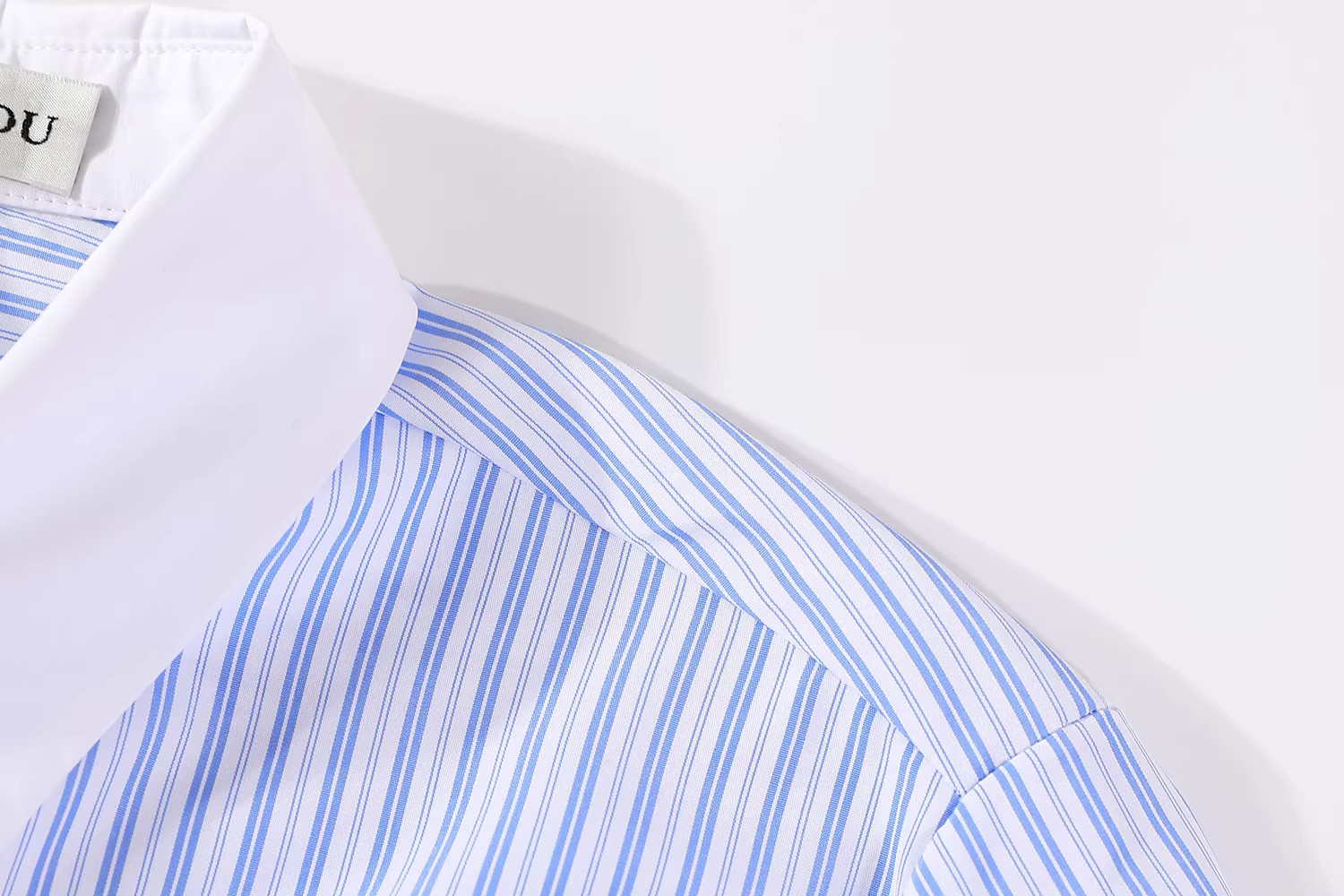 Áo sơ mi kẻ sọc xanh dáng rộng kiểu Pháp dành cho nữ, áo kiểu xuân hè độc đáo và đẹp mắt.