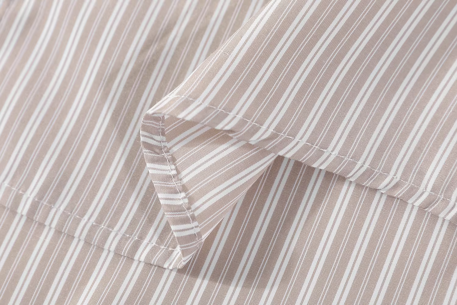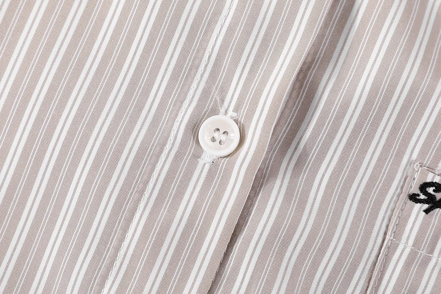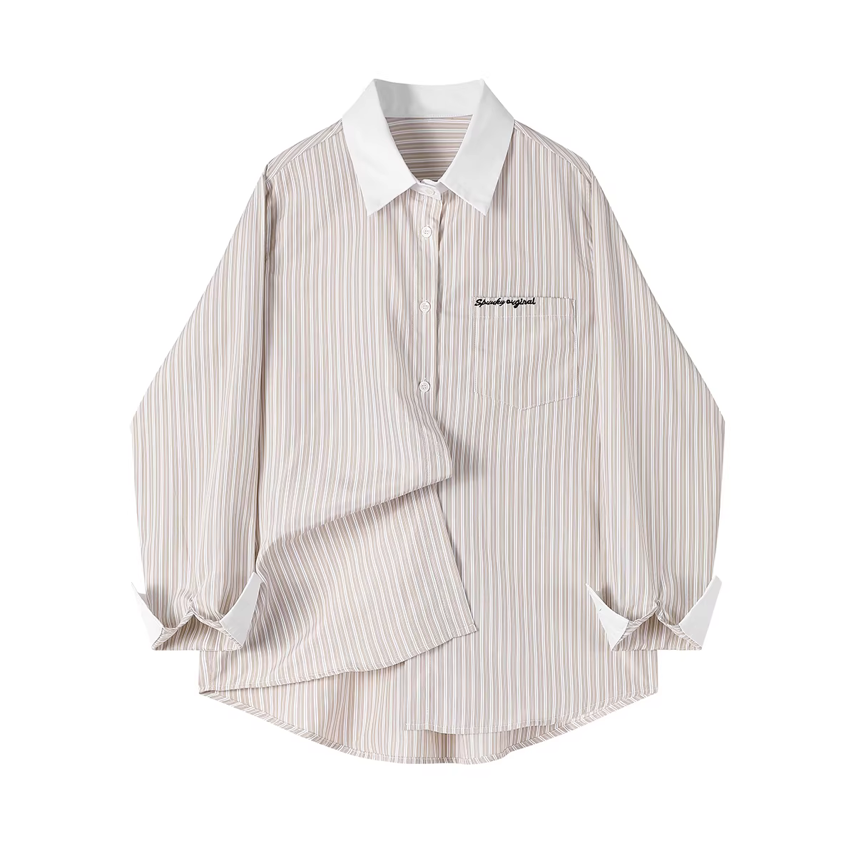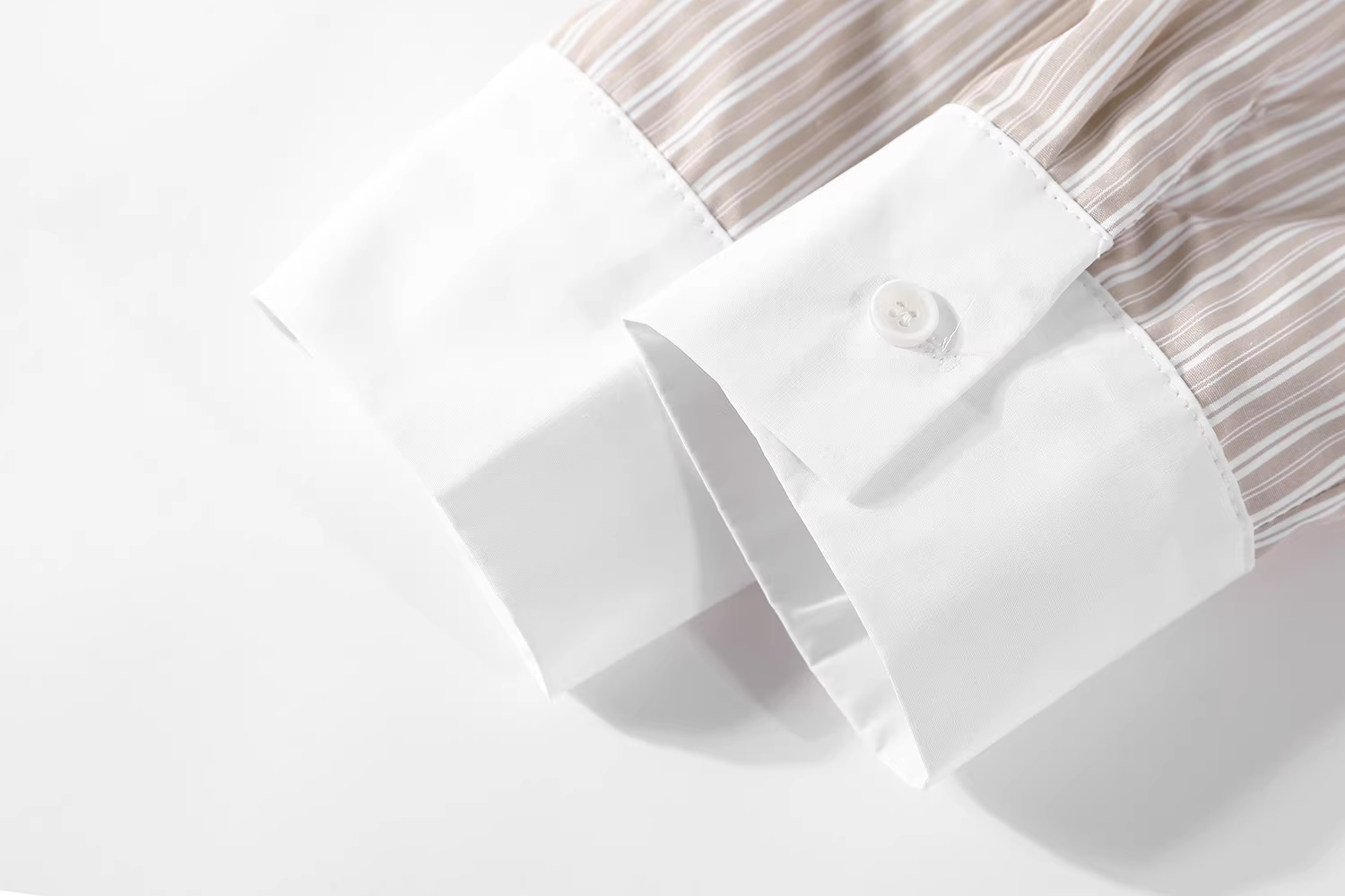 Áo sơ mi kẻ sọc xanh dáng rộng kiểu Pháp dành cho nữ, áo kiểu xuân hè độc đáo và đẹp mắt.