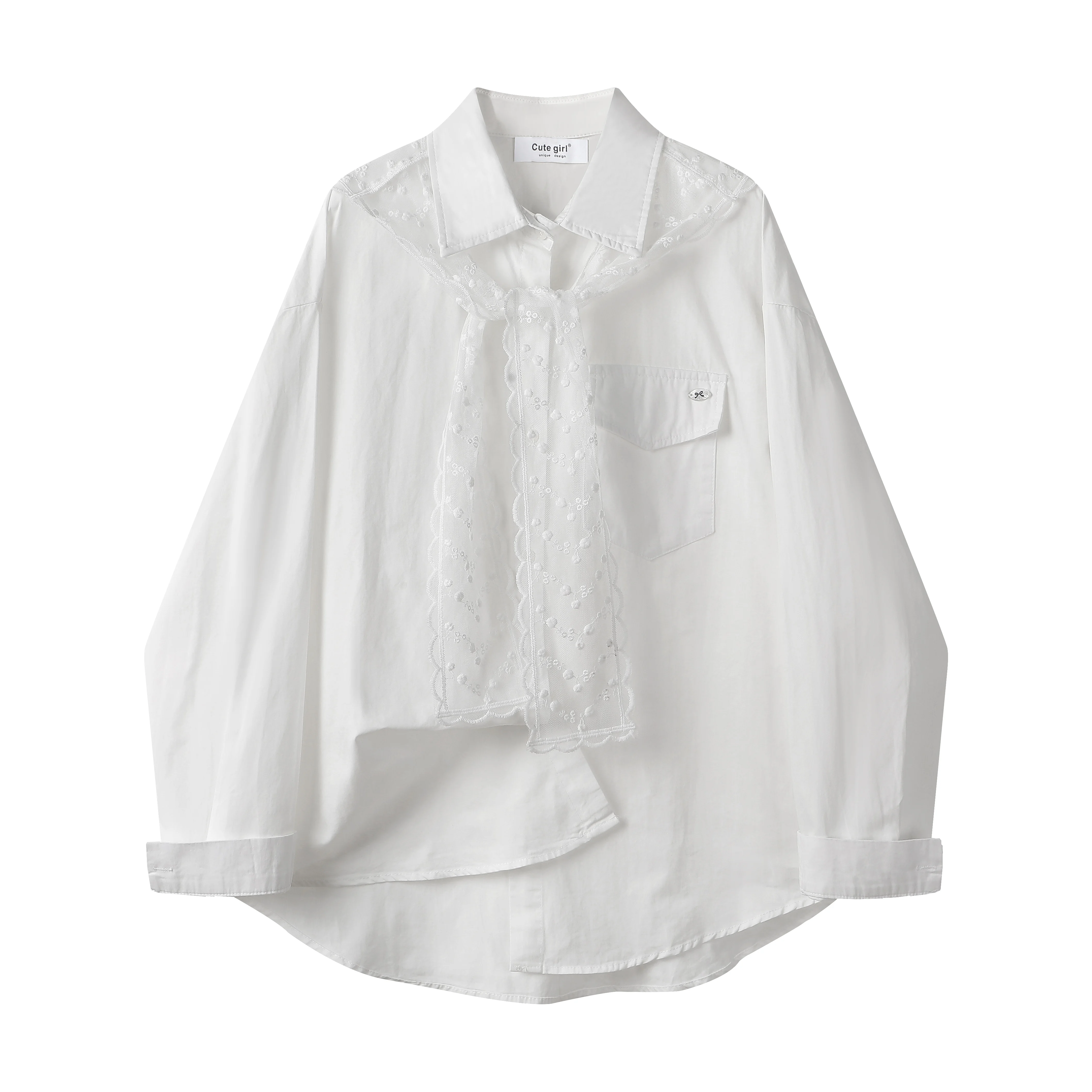 Áo sơ mi khăn choàng ren phong cách Hàn Quốc dễ thương dành cho nữ, áo đa năng thời trang mùa xuân với khí chất thanh lịch
