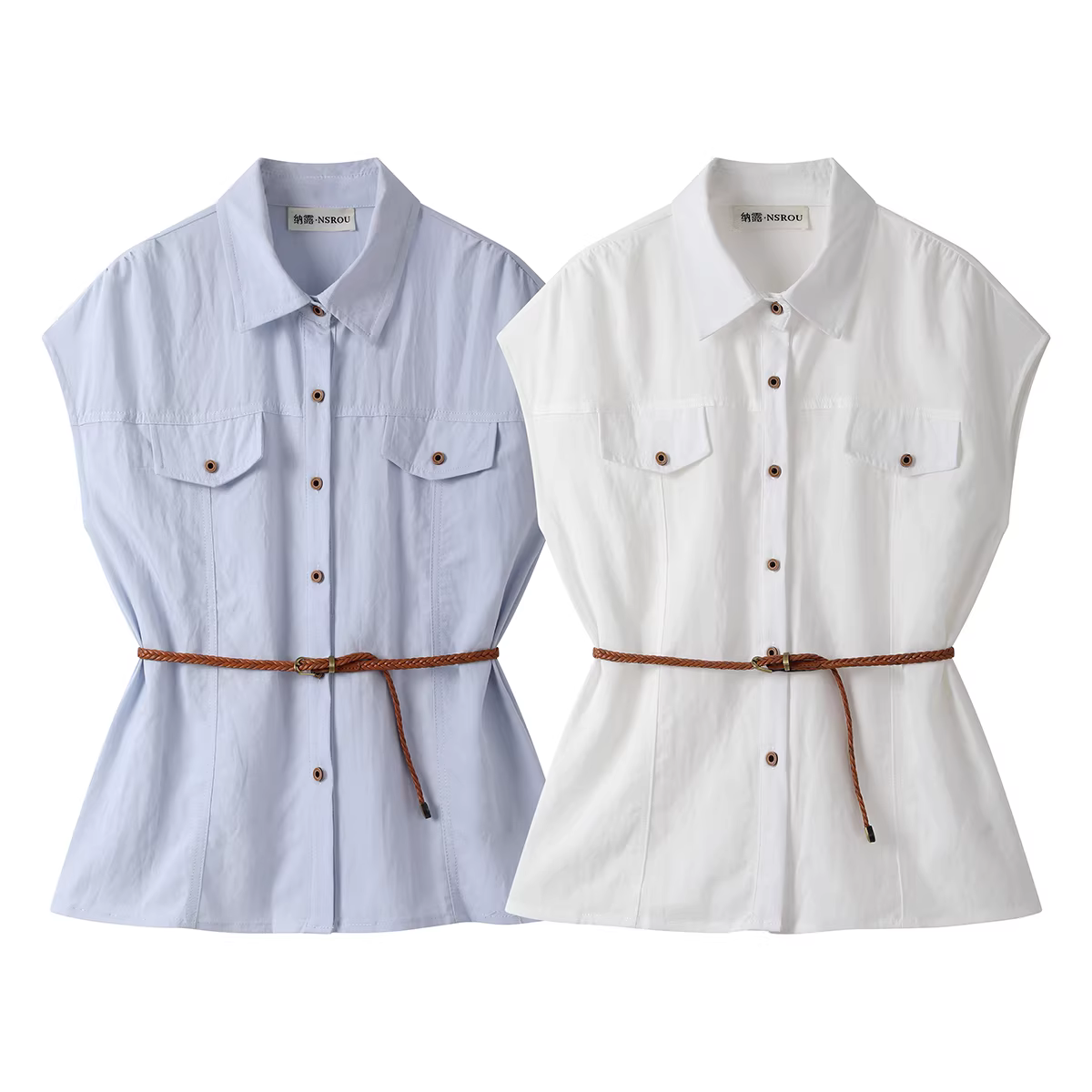 Áo sơ mi không tay kiểu dáng cổ điển kiểu Pháp dành cho nữ, thiết kế mùa hè mới, áo độc đáo và lộng lẫy.
