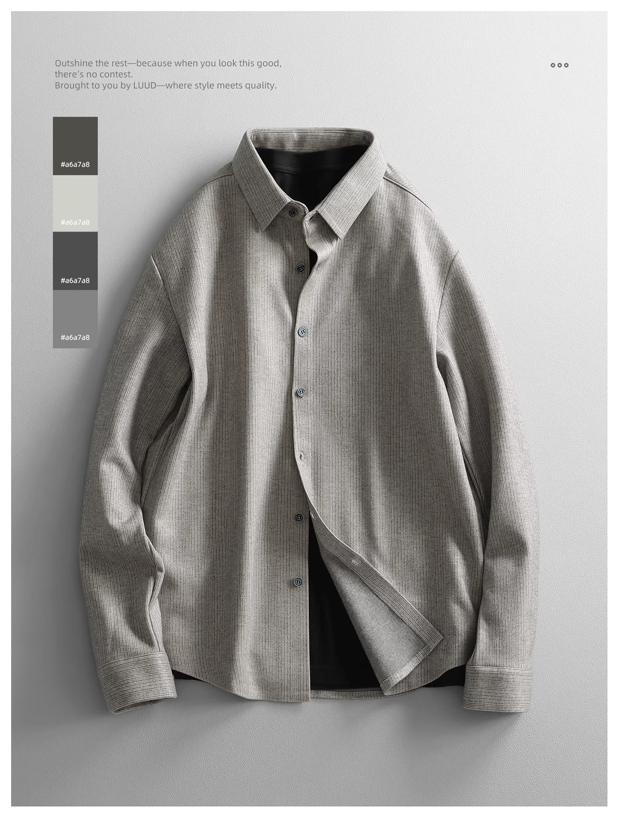 Áo sơ mi len ấm cao cấp LUUD dành cho nam, chống nhăn, áo sơ mi dài tay, kiểu dáng đơn giản, áo khoác có ve đơn giản