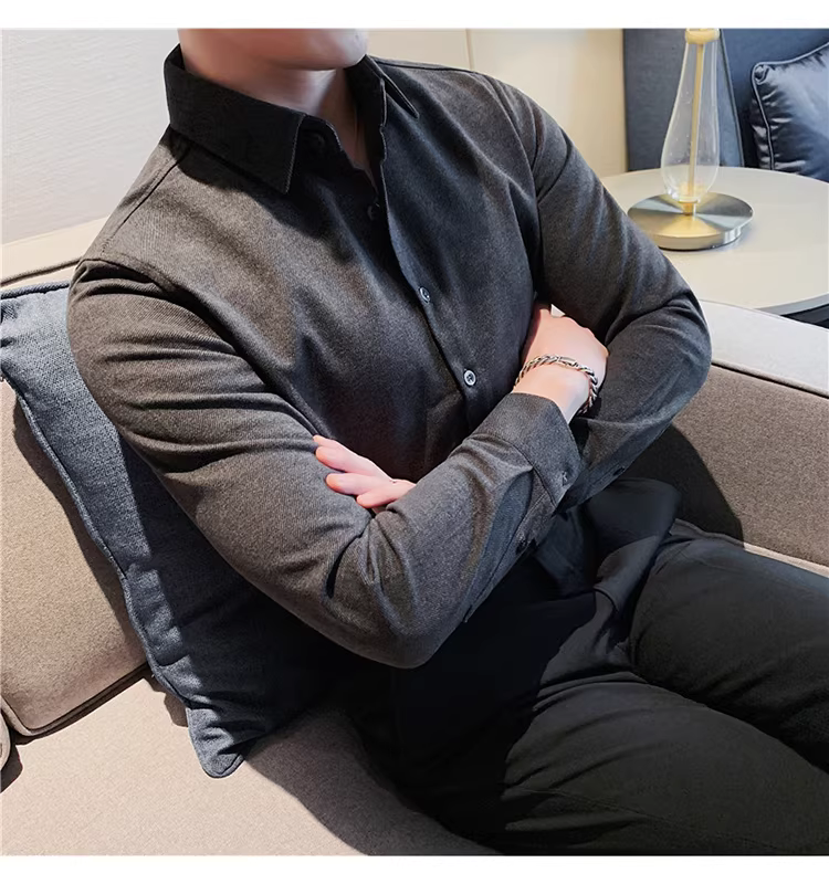 - Áo sơ mi len hai mặt dành cho nam, dài tay, lót lông cừu mùa đông, dày dặn, ấm áp, ôm dáng, lịch sự công sở, áo len chải kỹ