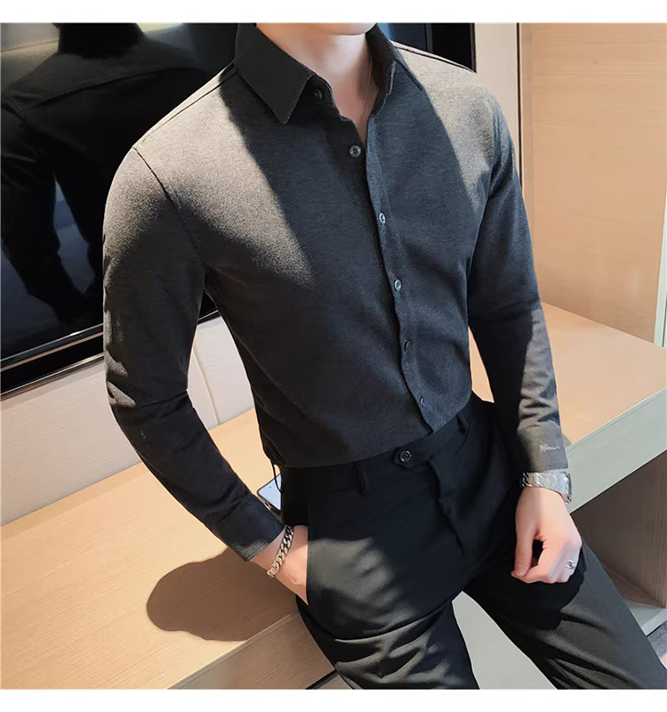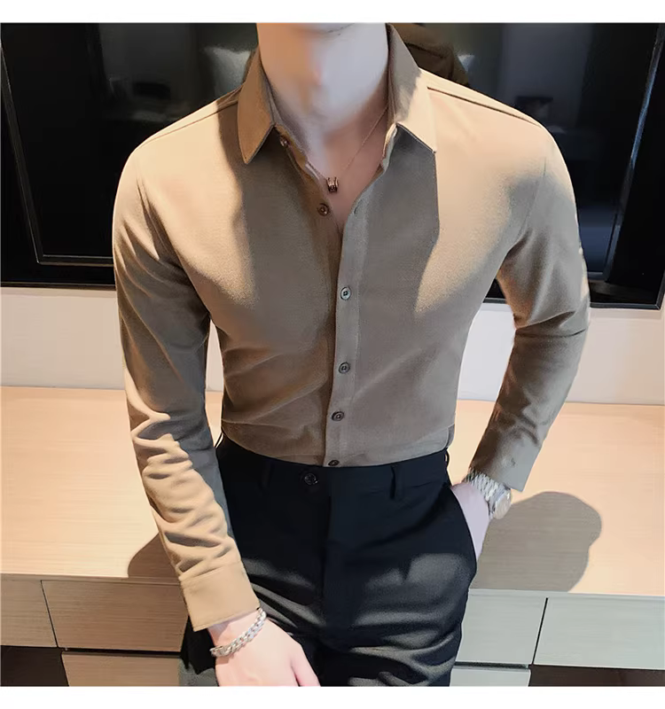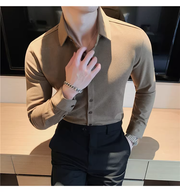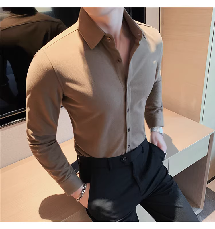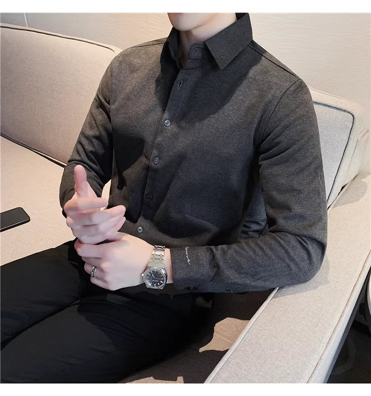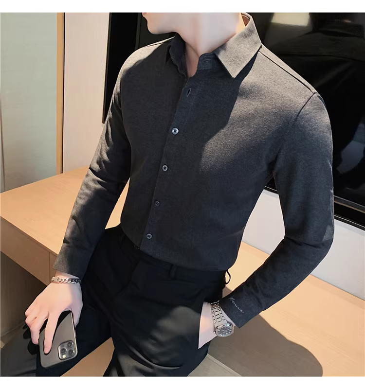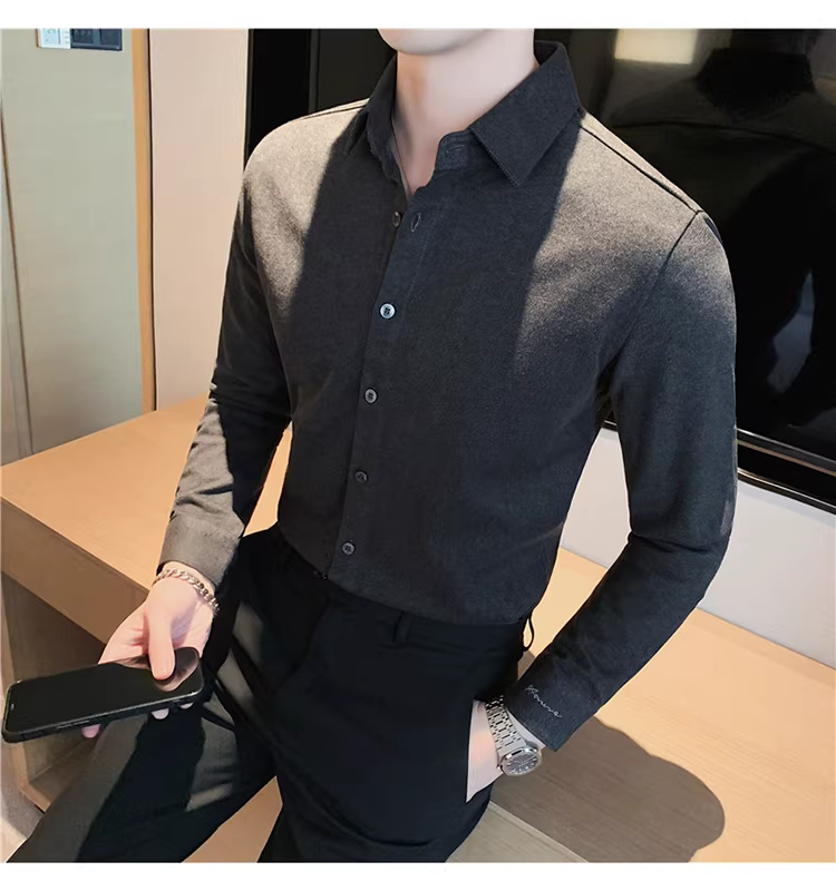 - Áo sơ mi len mùa đông cho nam, dài tay, dày dặn, ấm áp, ôm dáng, thời trang, chất liệu lông cừu hai mặt chải kỹ, áo sơ mi nam công sở lịch sự