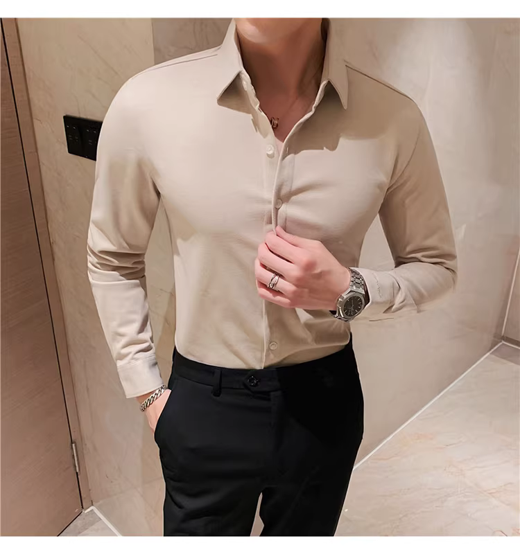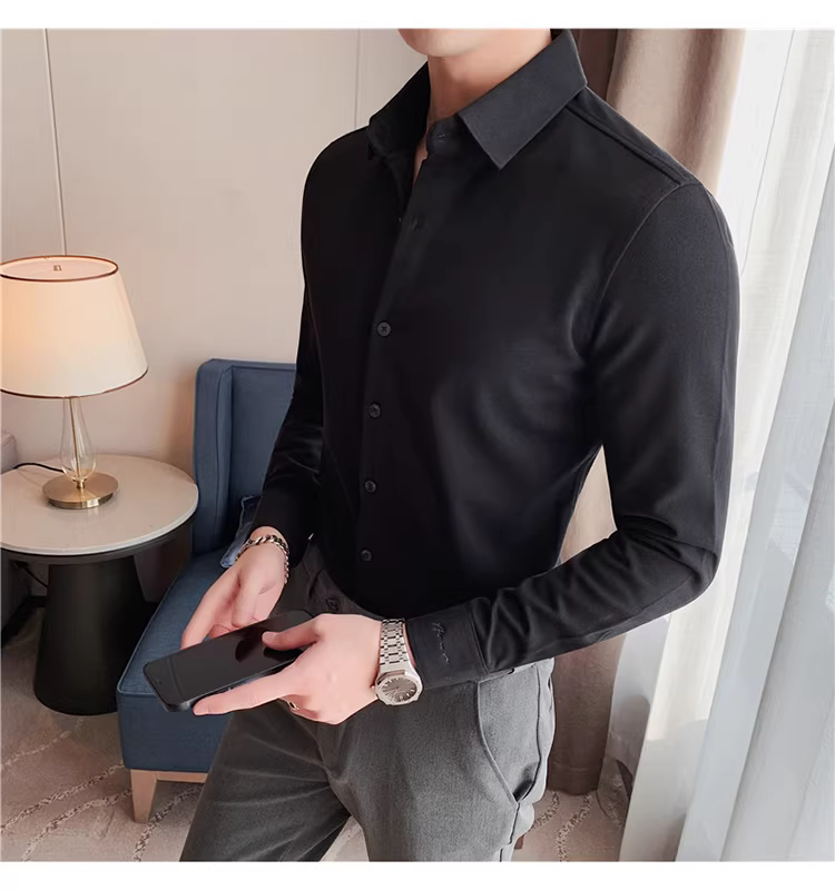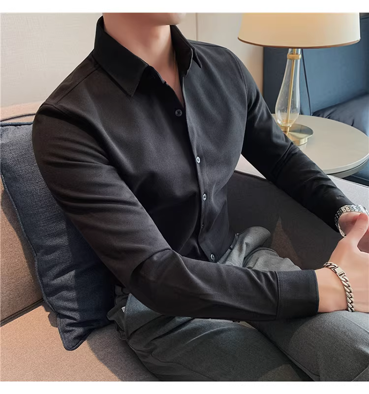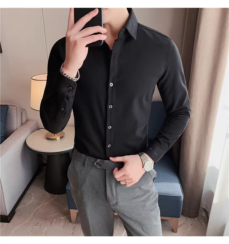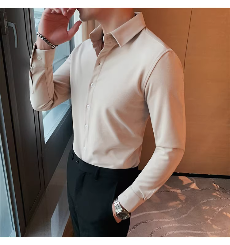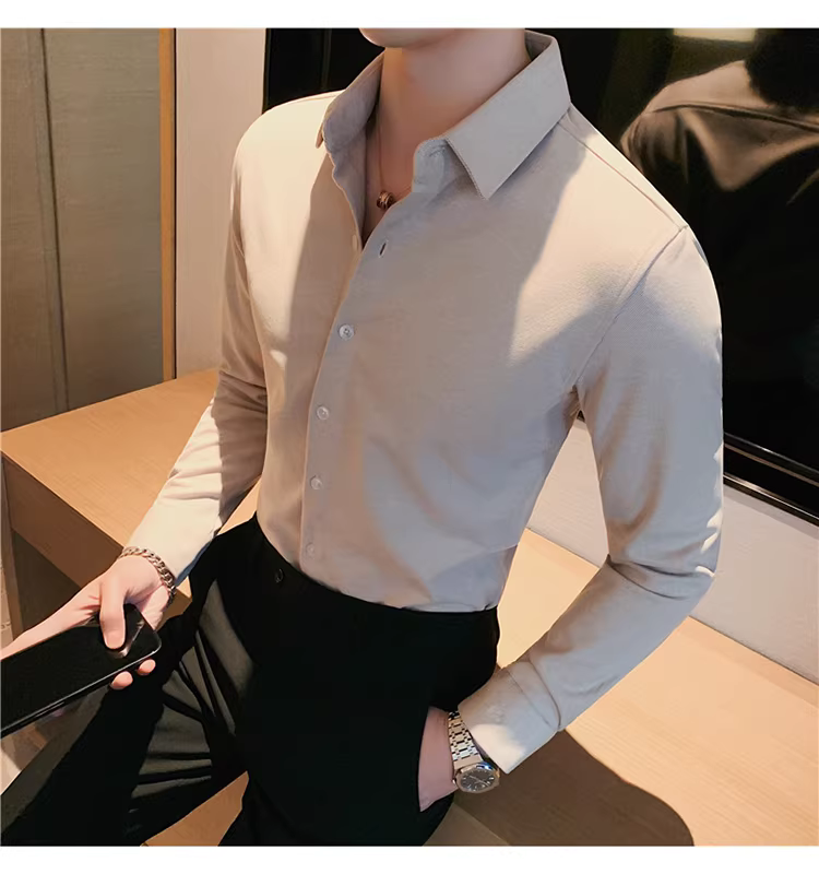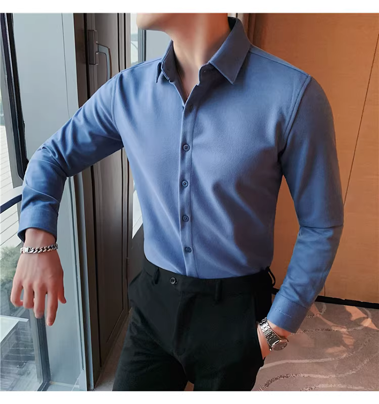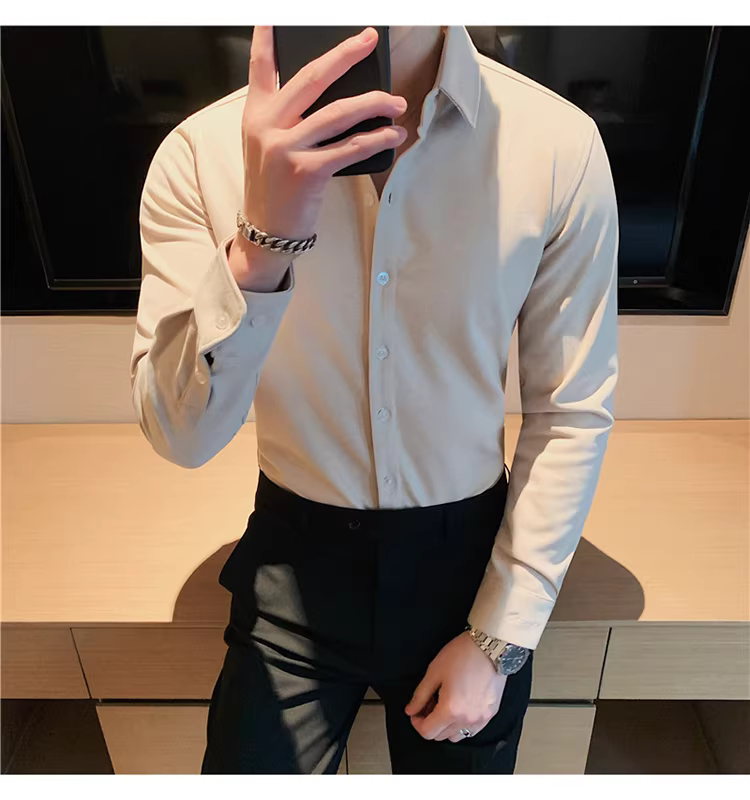 - Áo sơ mi len mùa đông cho nam, dài tay, dày dặn, ấm áp, ôm dáng, thời trang, chất liệu lông cừu hai mặt chải kỹ, áo sơ mi nam công sở lịch sự