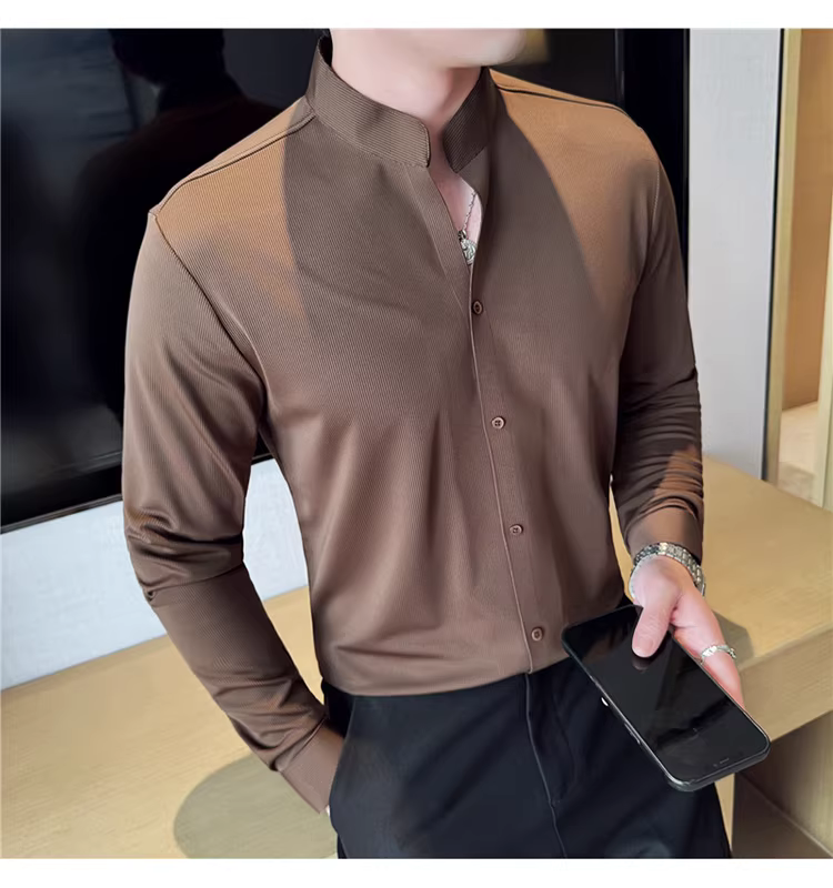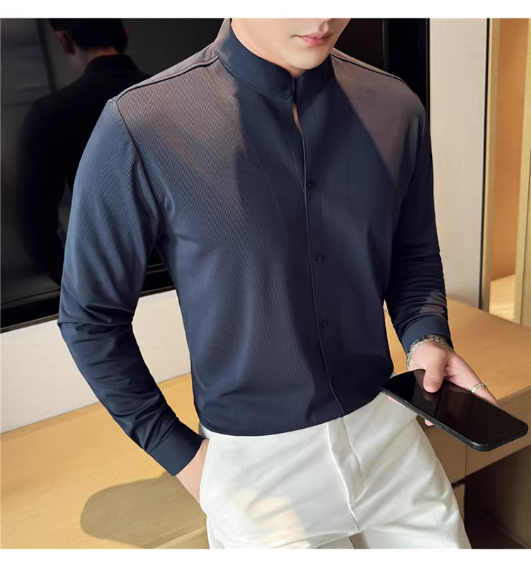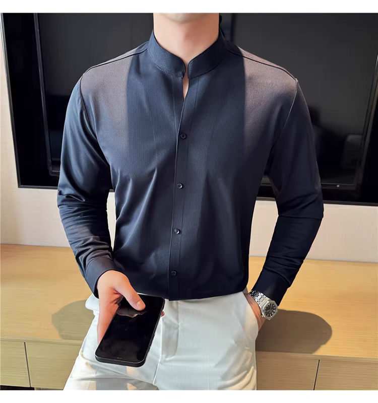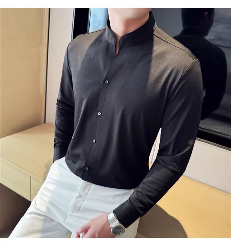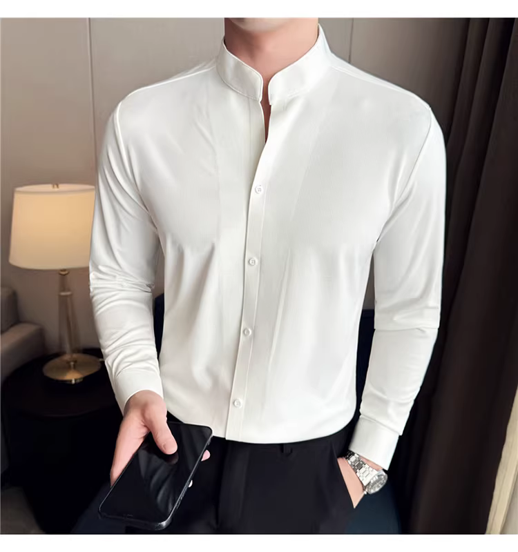 Áo sơ mi liền mạch cổ đứng phong cách Trung Hoa mới dành cho nam, dài tay, trang phục công sở cao cấp, đa năng, co giãn, ôm vừa vặn, áo sơ mi trắng cao cấp