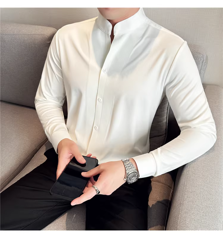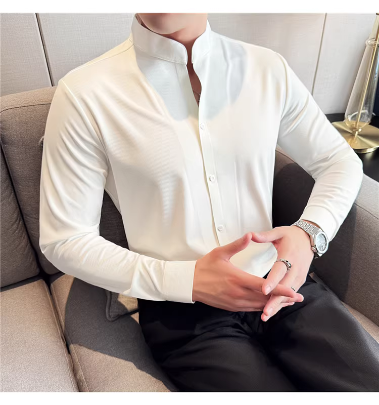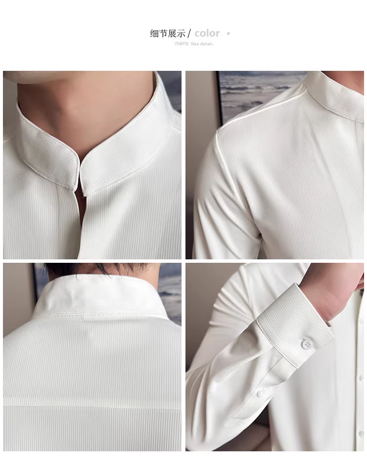 - Áo sơ mi liền mạch cổ đứng phong cách Trung Hoa mới dành cho nam, dài tay, trang phục công sở cao cấp, đa năng, co giãn, ôm vừa vặn, áo sơ mi trắng cao cấp