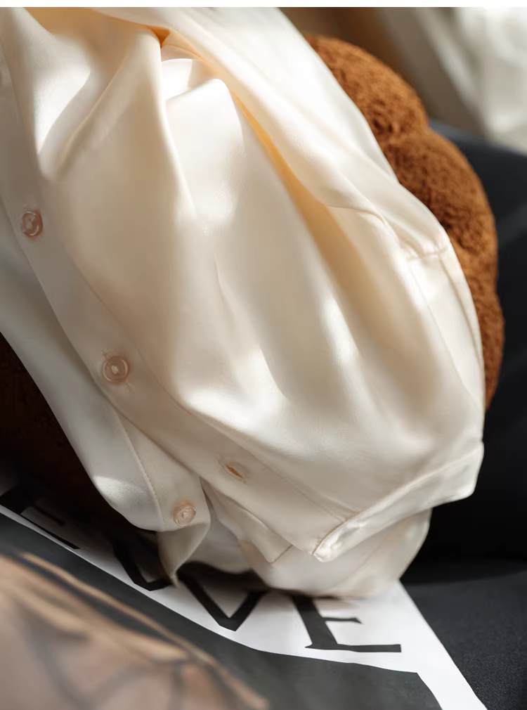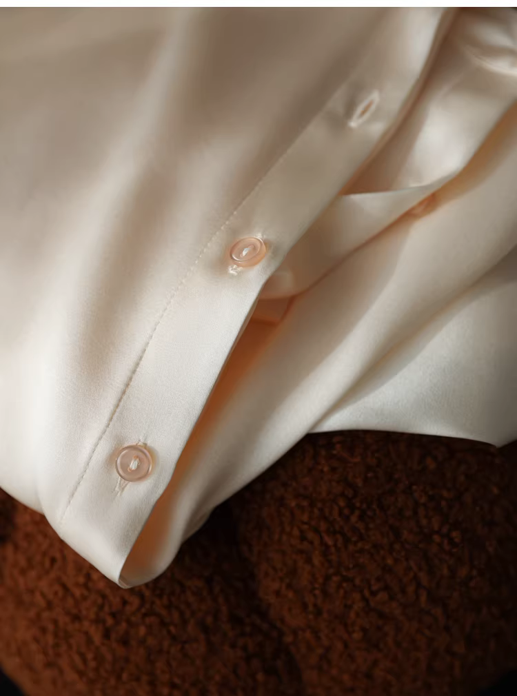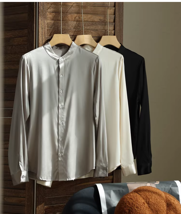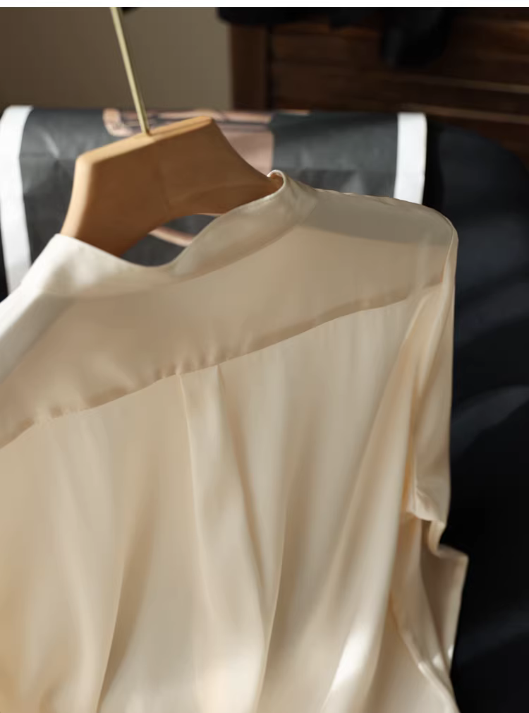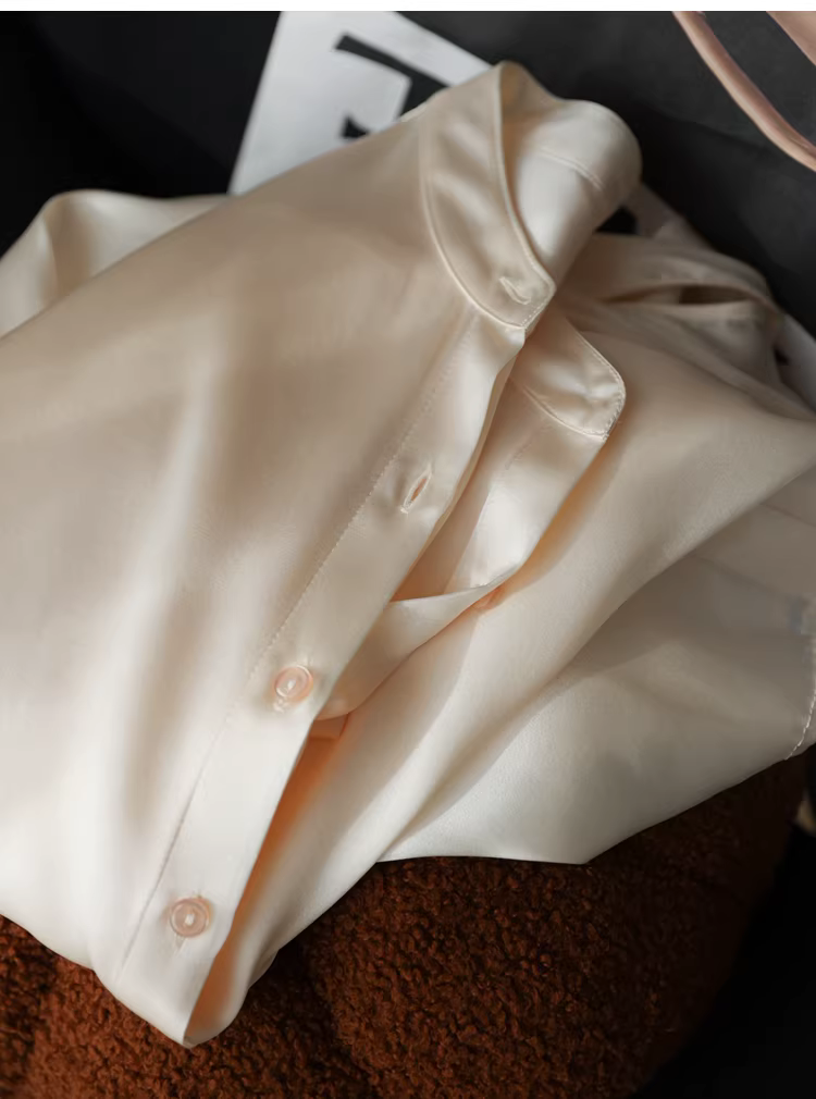 - Áo sơ mi lụa nặng 19mm, chất liệu lụa tơ tằm bóng mượt cao cấp, kiểu cổ đứng, màu trơn, dành cho nữ mùa thu.