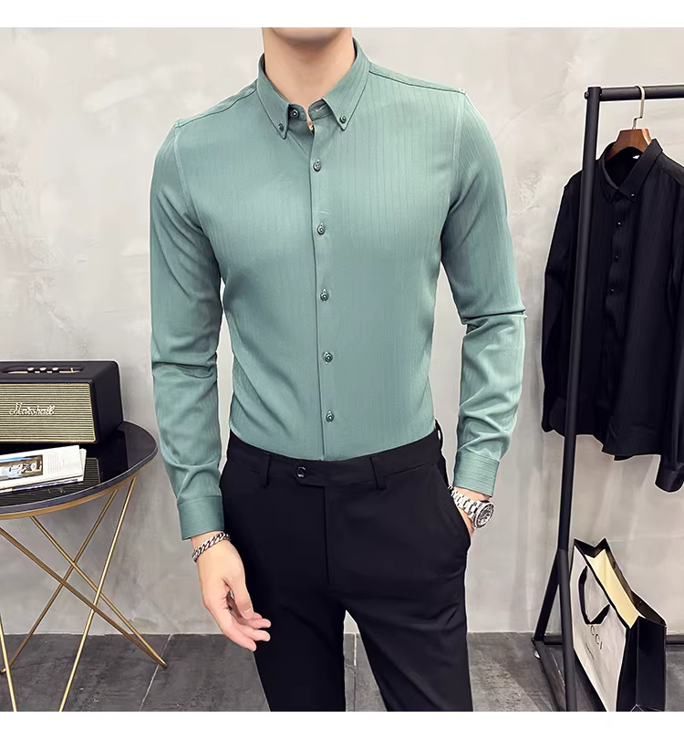 - Áo sơ mi nam cao cấp kẻ sọc, tay dài, kiểu mới thu đông 2024, phong cách công sở lịch lãm, đa năng, hợp thời trang, ôm dáng, lịch lãm