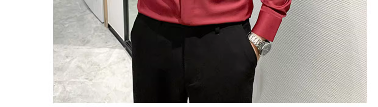 - Áo sơ mi nam cao cấp tay dài, kiểu dáng ôm body mới, thích hợp cho công sở và thường ngày mùa xuân thu, màu đỏ với khuy giấu và thêu theo năm sinh.