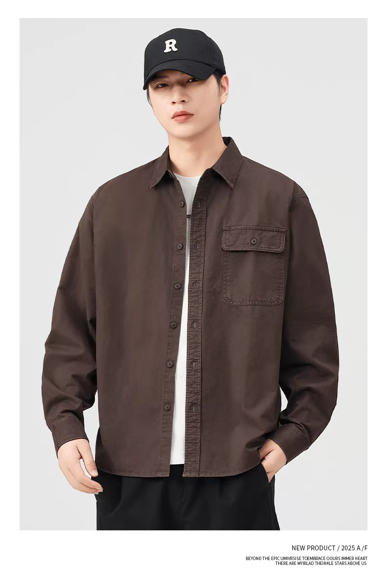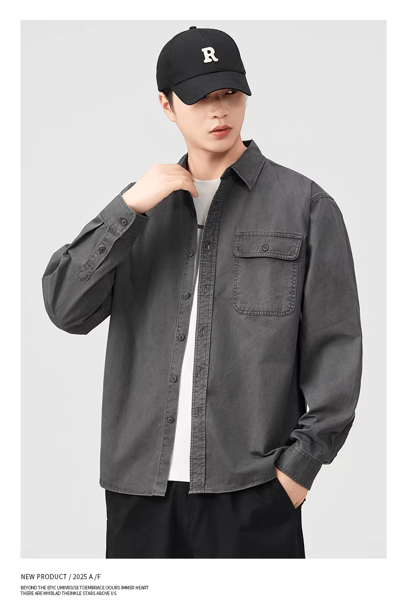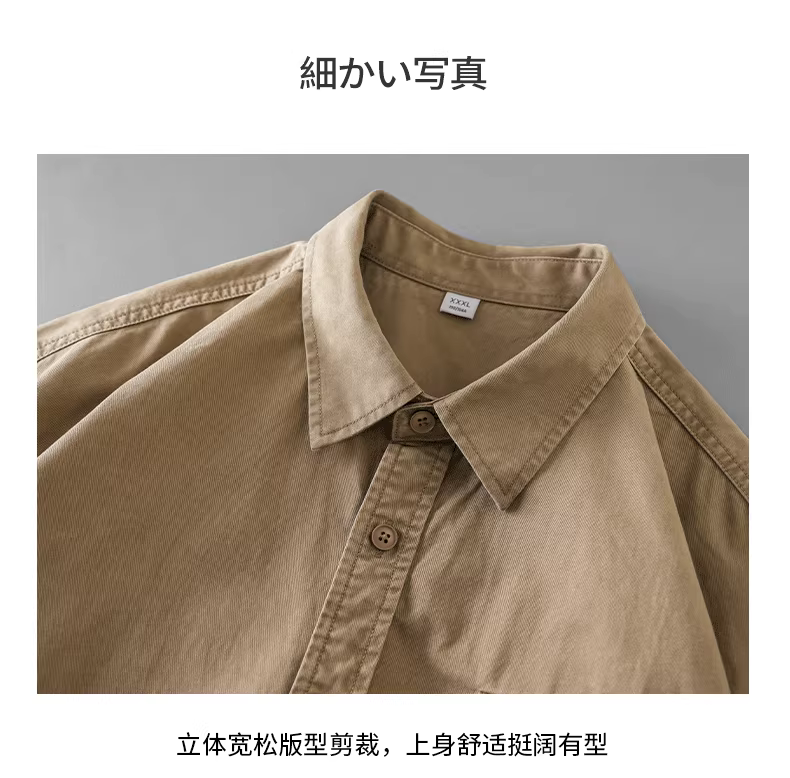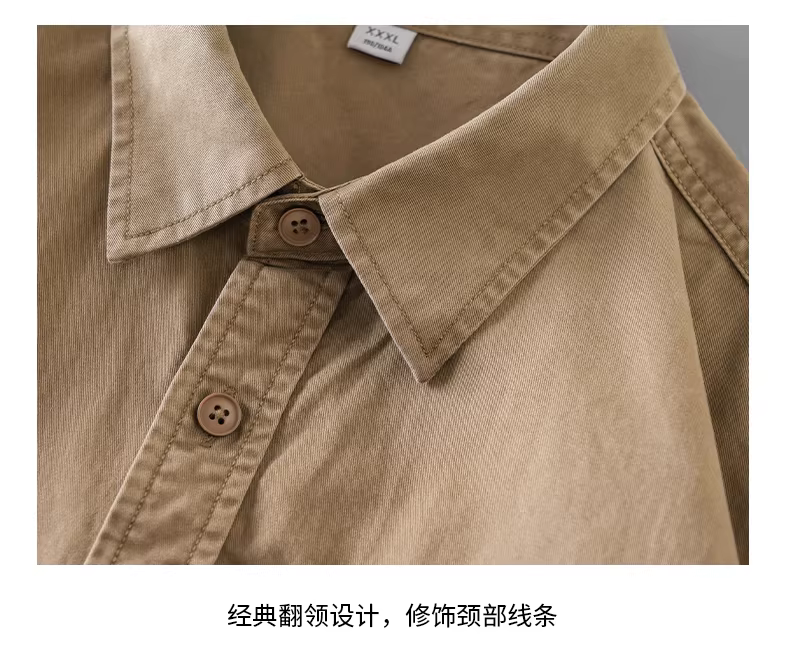 Áo sơ mi nam chất liệu cotton 100%, dày 400g, tay dài, mặc xuân thu, kiểu dáng Mỹ, chất liệu cotton nguyên chất, dáng rộng, cổ trụ.