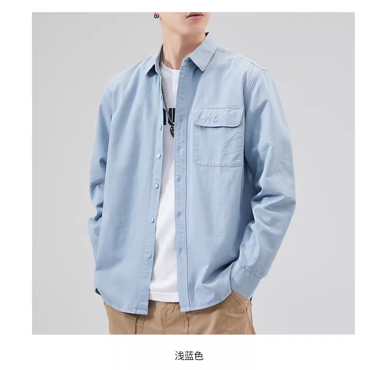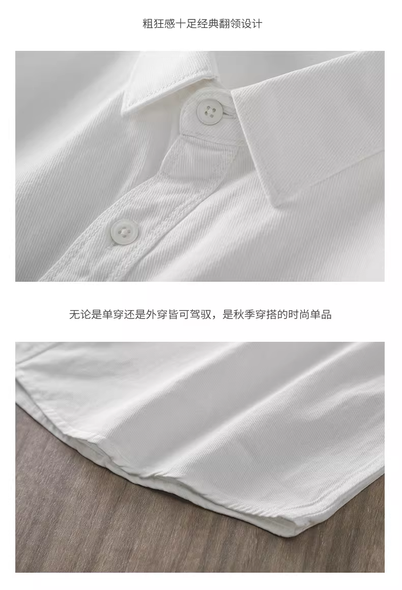 - Áo sơ mi nam chất liệu cotton 100%, dày 400G, tay dài, phong cách Mỹ mùa thu, áo khoác sơ mi trắng cao cấp, kiểu dáng thường ngày