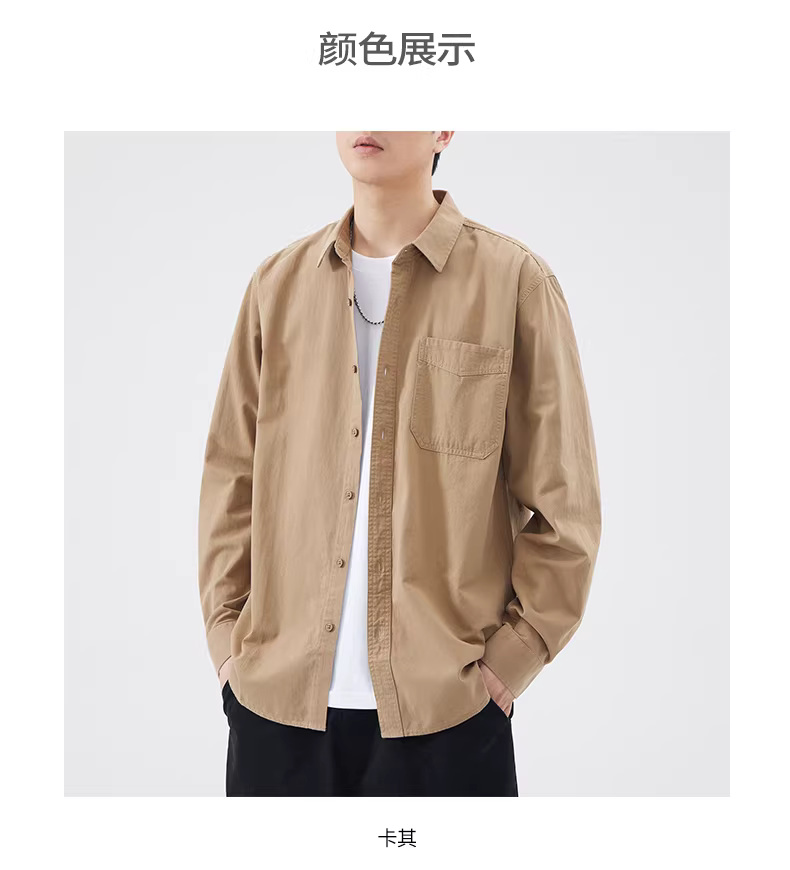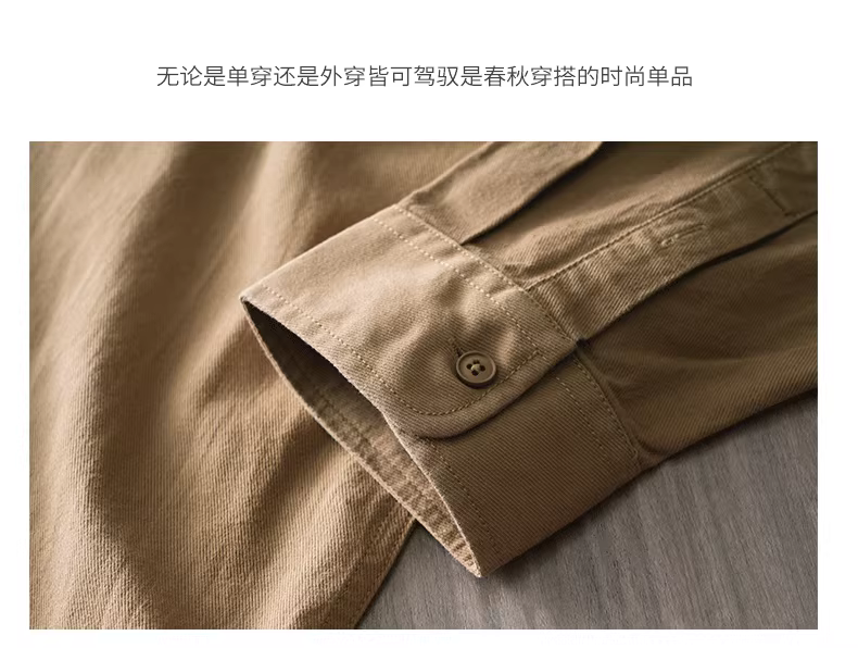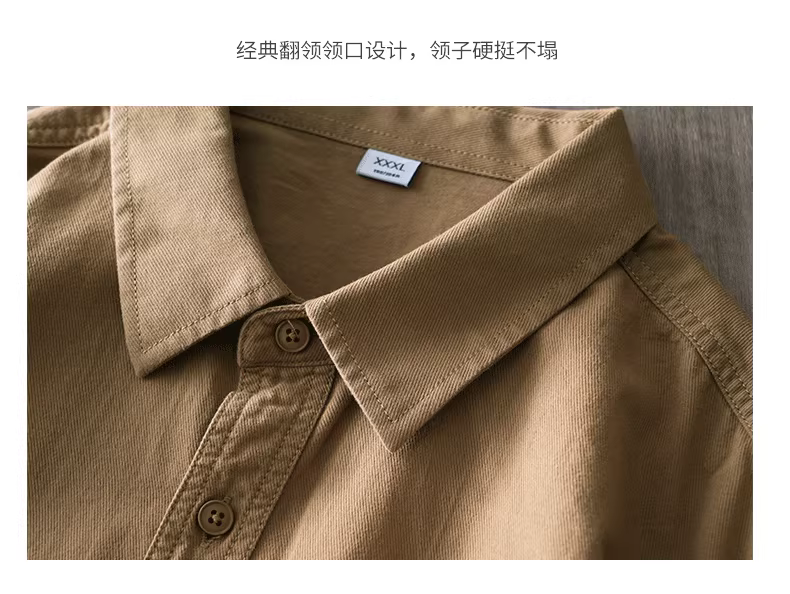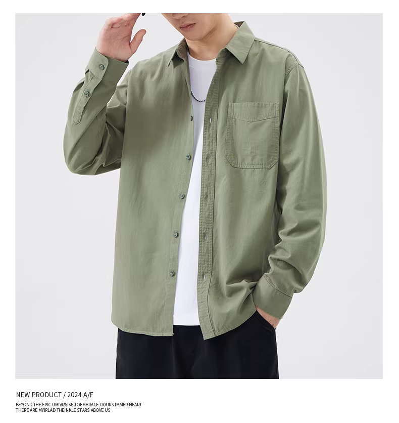 Áo sơ mi nam chất liệu cotton dày 350G, tay dài, mùa thu, phong cách Mỹ, cao cấp, có túi, cổ trụ, áo khoác màu trắng