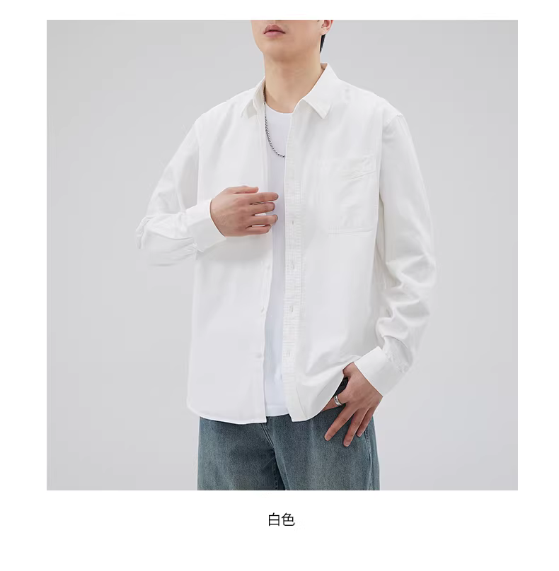 - Áo sơ mi nam chất liệu cotton dày 350G, tay dài, mùa thu, phong cách Mỹ, cao cấp, có túi, cổ trụ, áo khoác màu trắng