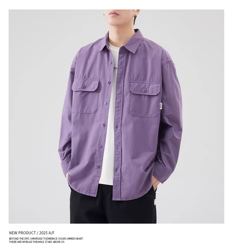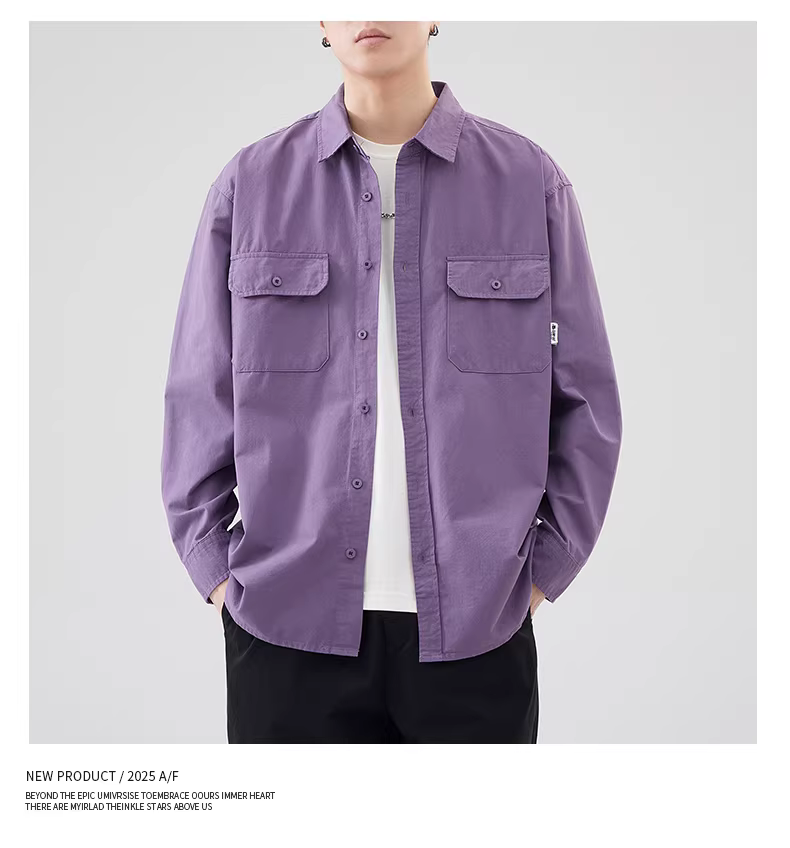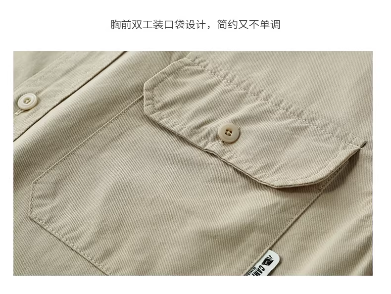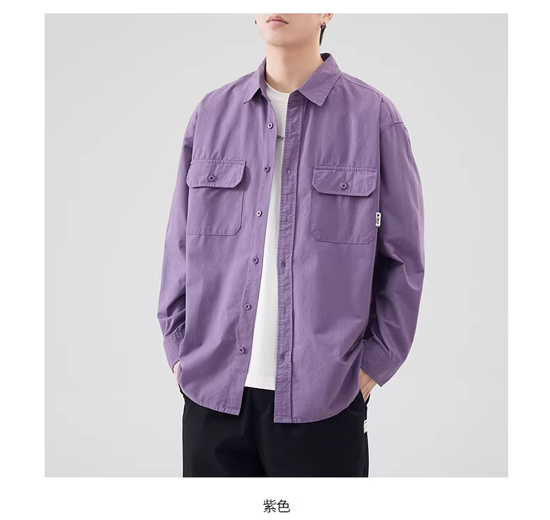 • Áo sơ mi nam chất liệu cotton dày 400G, tay dài, kiểu dáng Mỹ, mùa xuân thu, có túi, dáng rộng, cổ trụ, phong cách casual.