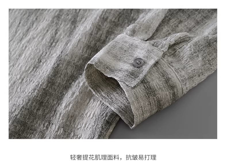 Áo sơ mi nam cổ Cuba chất liệu jacquard kiểu Mỹ, tay dài, mùa xuân thu, phong cách cổ điển, áo khoác sơ mi dáng rộng, thoải mái.