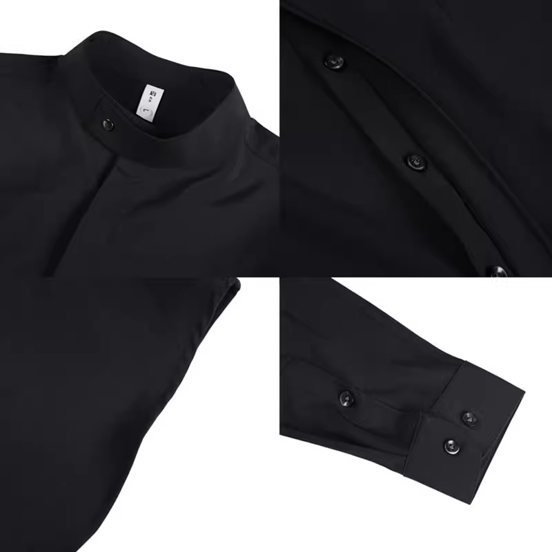 - Áo sơ mi nam cổ đứng dài tay mùa xuân mới thời trang cao cấp thiết kế lịch lãm công sở, kiểu dáng giấu khuy màu đen