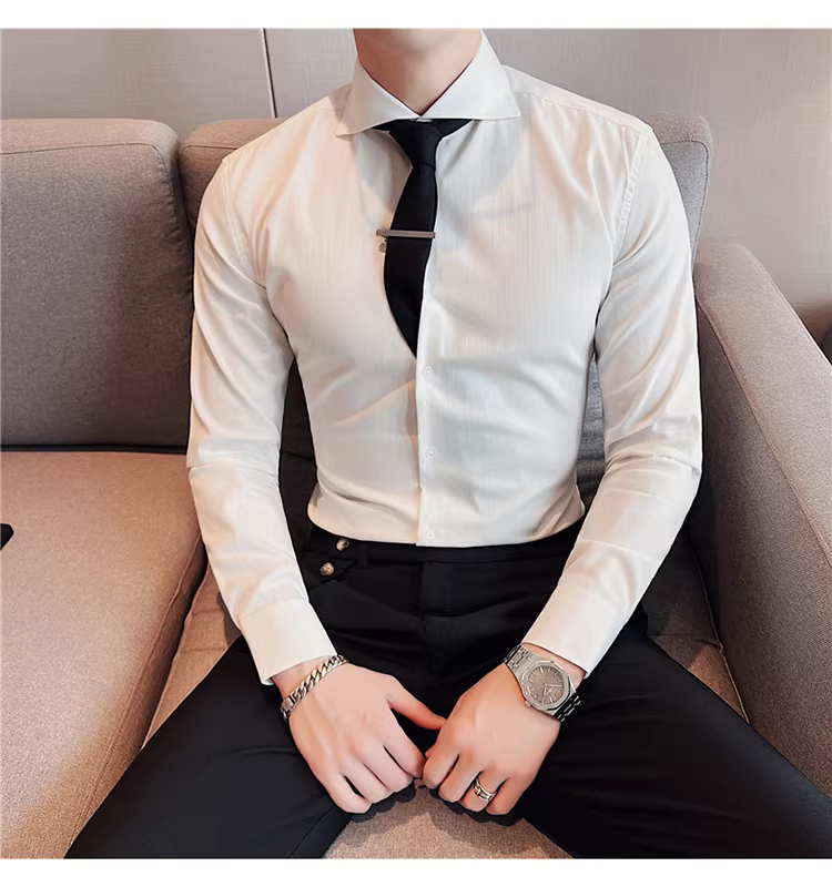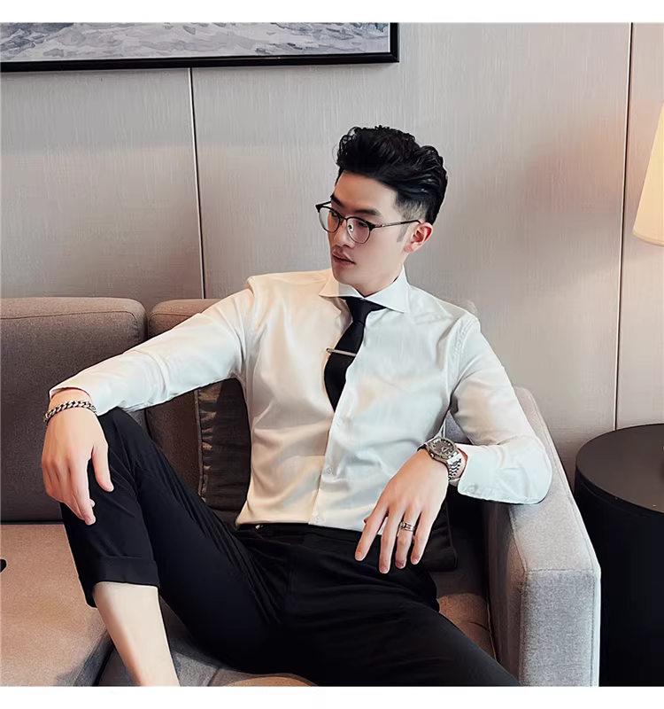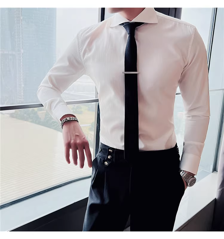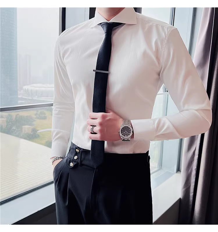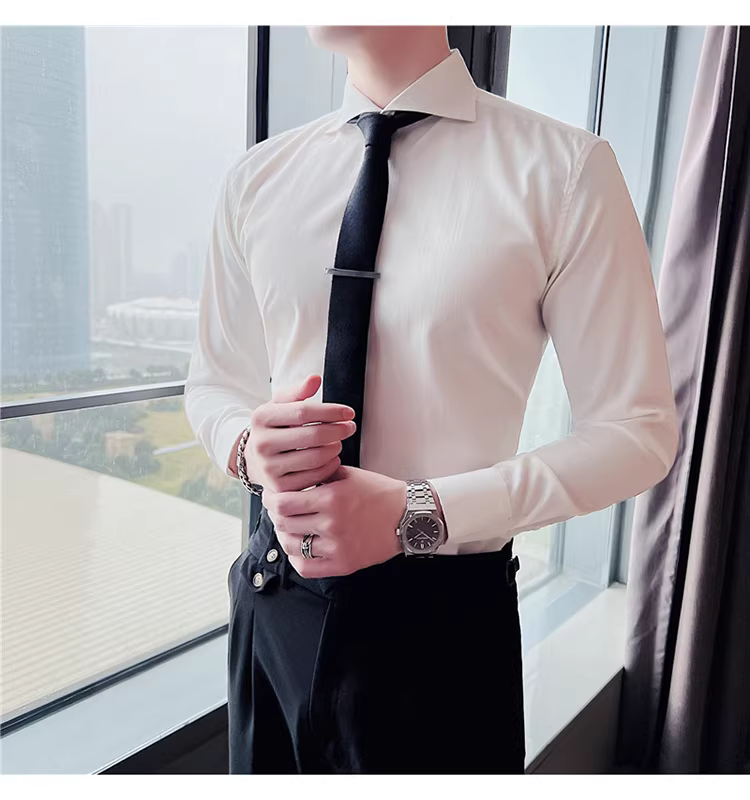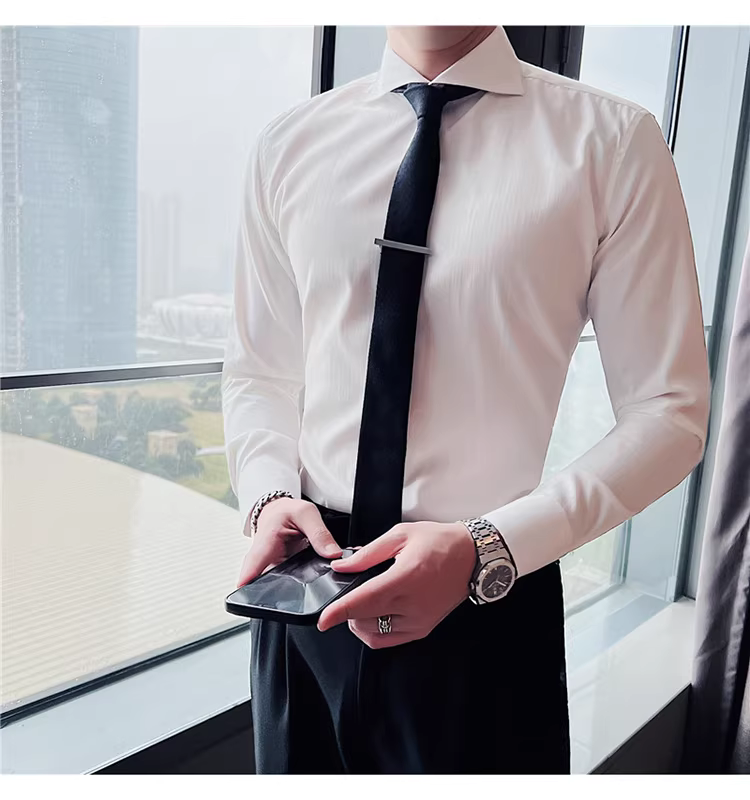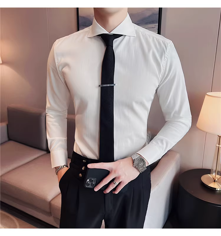 - Áo sơ mi nam cổ Windsor một đường may, tay dài, kiểu mới xuân thu 2024, cao cấp, lịch lãm, lịch sự, đẹp trai