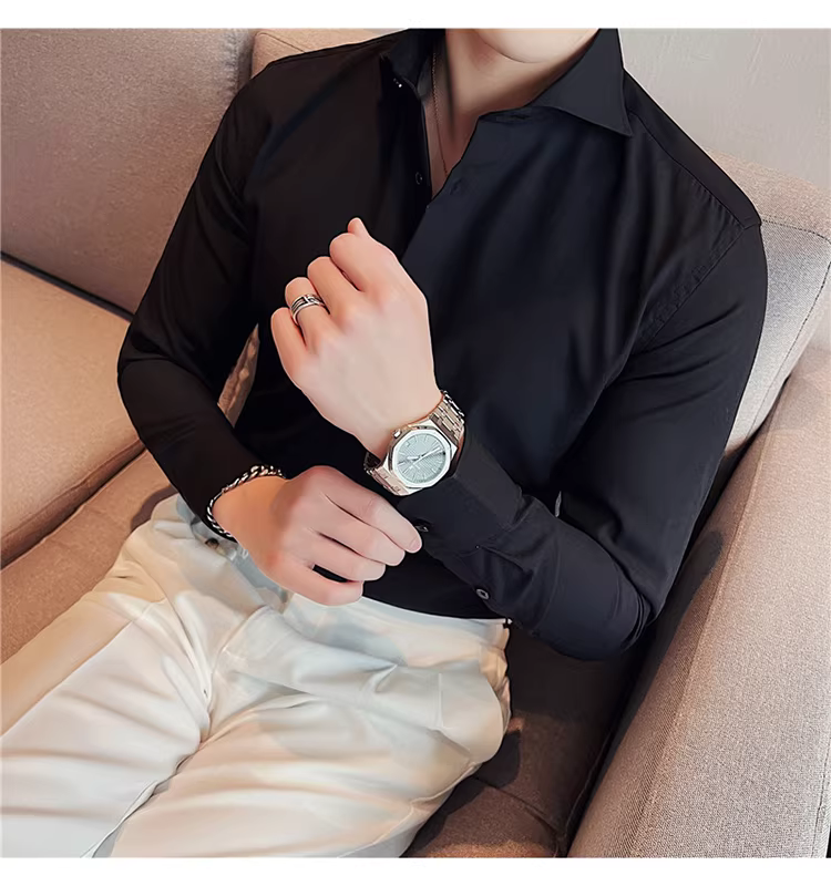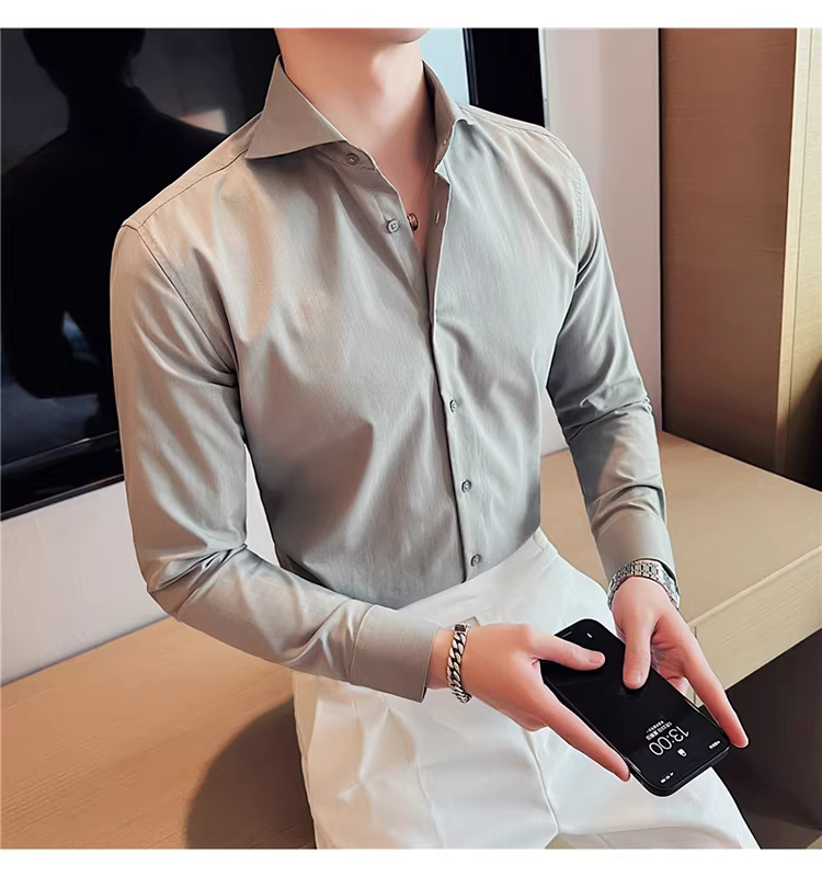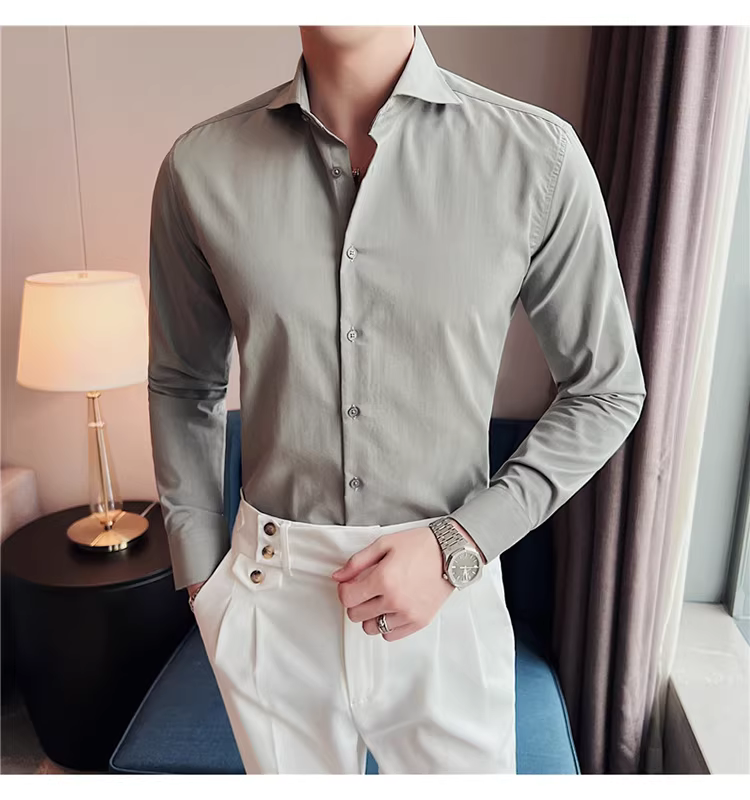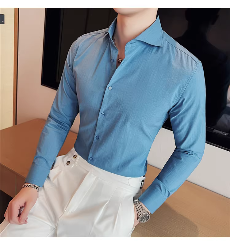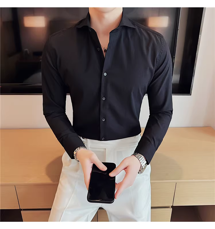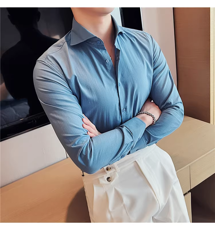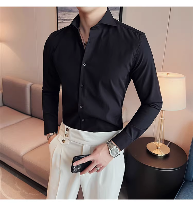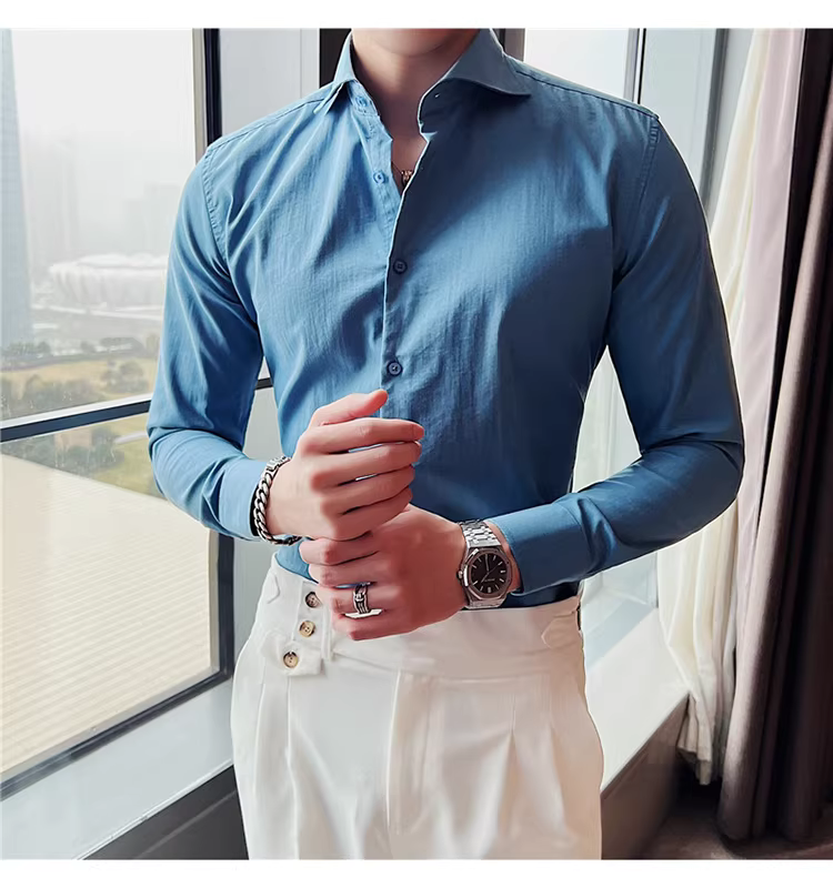 - Áo sơ mi nam cổ Windsor một đường may, tay dài, kiểu mới xuân thu 2024, cao cấp, lịch lãm, lịch sự, đẹp trai
