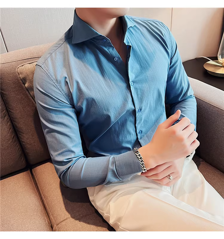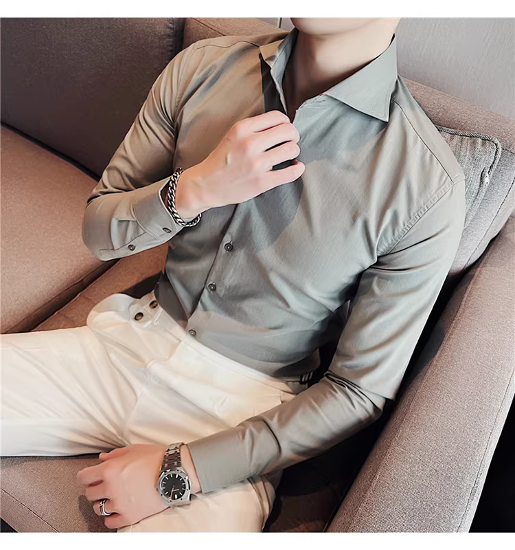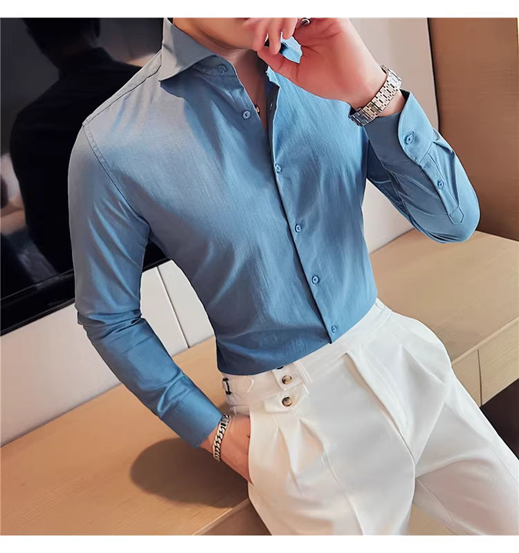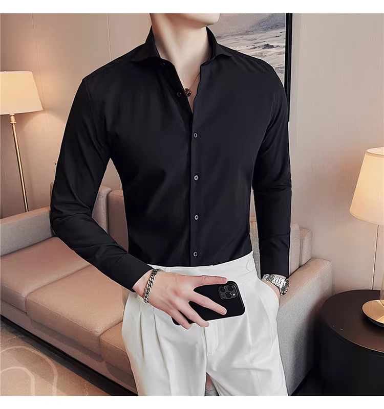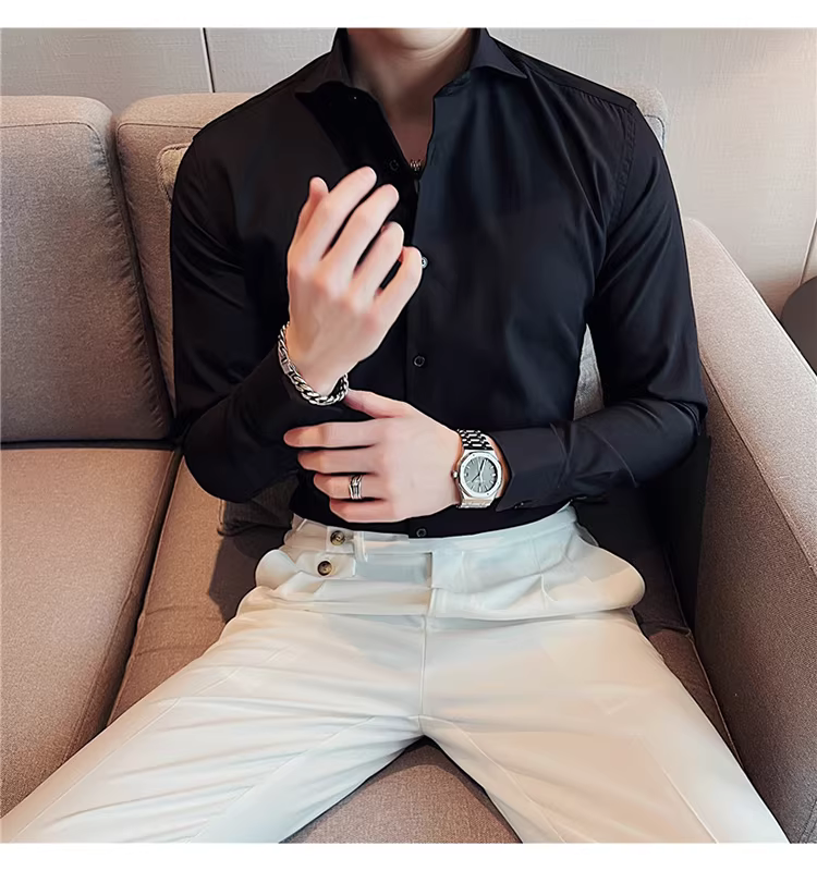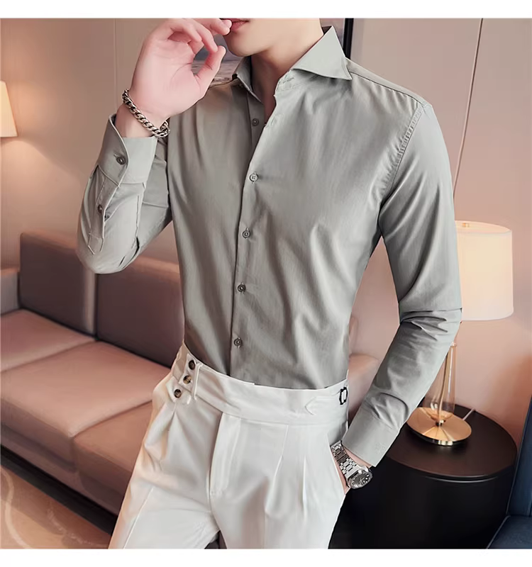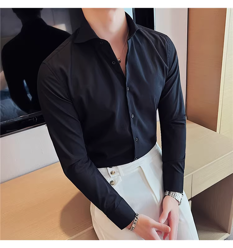 - Áo sơ mi nam cổ Windsor một đường may, tay dài, kiểu mới xuân thu 2024, cao cấp, lịch lãm, lịch sự, đẹp trai