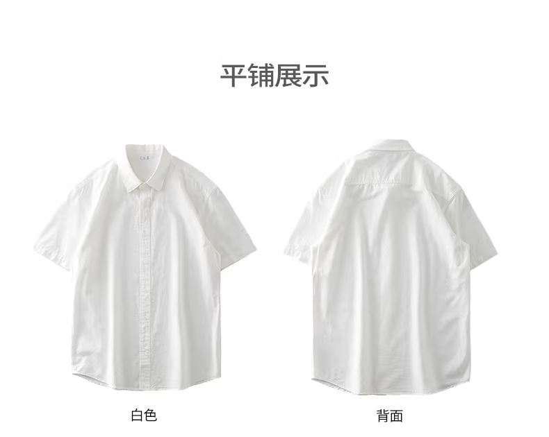 - Áo sơ mi nam cotton nguyên chất, tay ngắn, kiểu mới hè 2024, áo màu trơn cao cấp, áo khoác sơ mi dáng rộng, phong cách thường ngày.