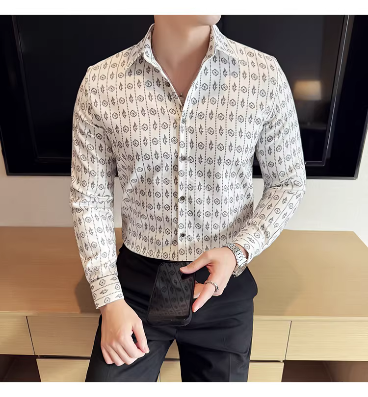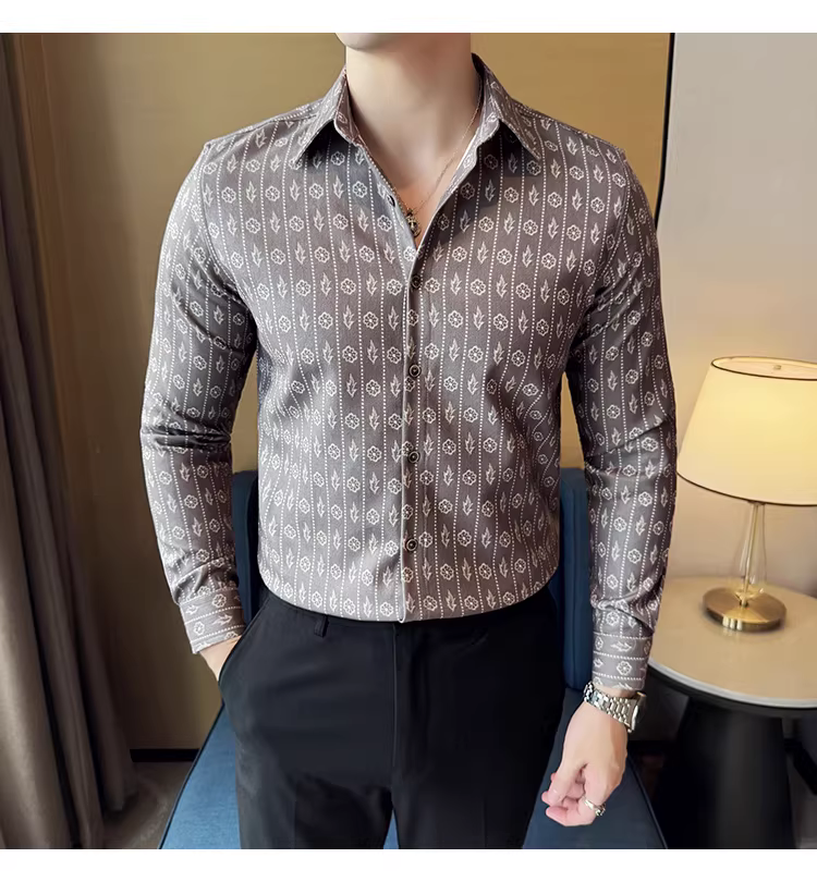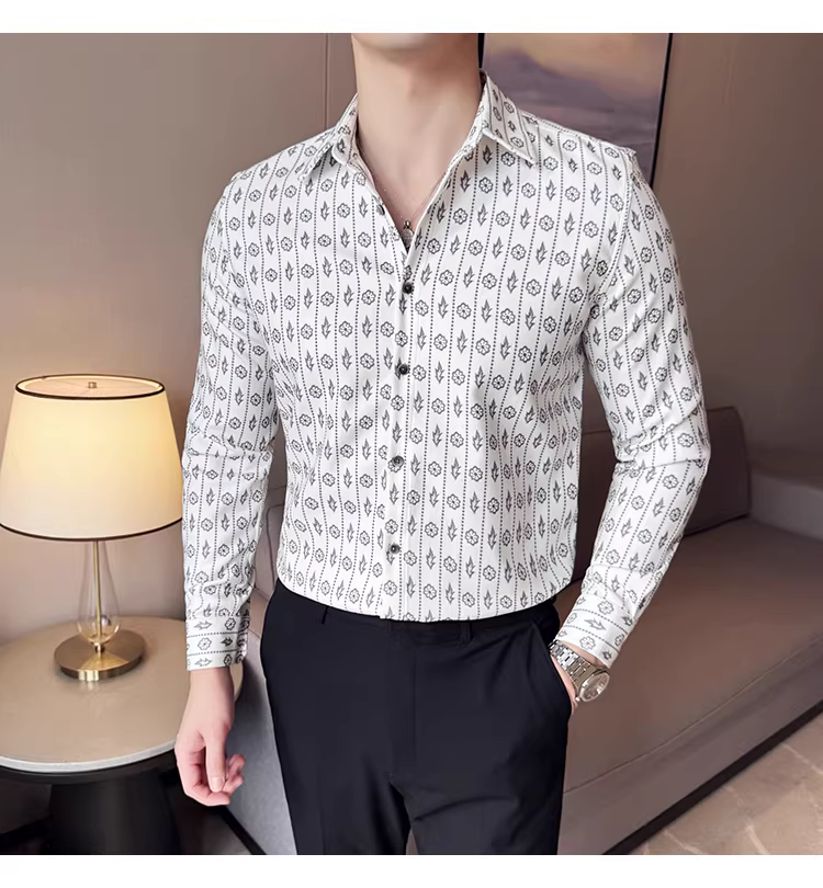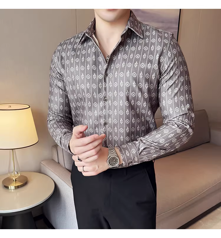 - Áo sơ mi nam da lộn dày in họa tiết thu đông, dài tay, thời trang, ôm dáng, đẹp trai, chất lượng cao, dễ chăm sóc