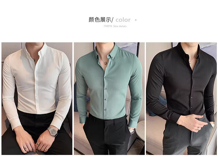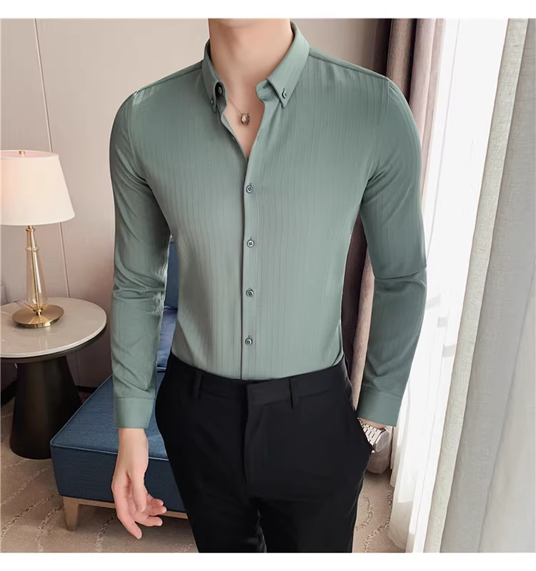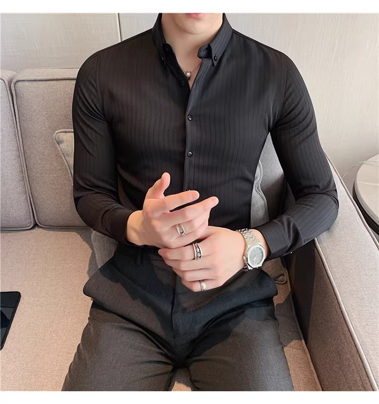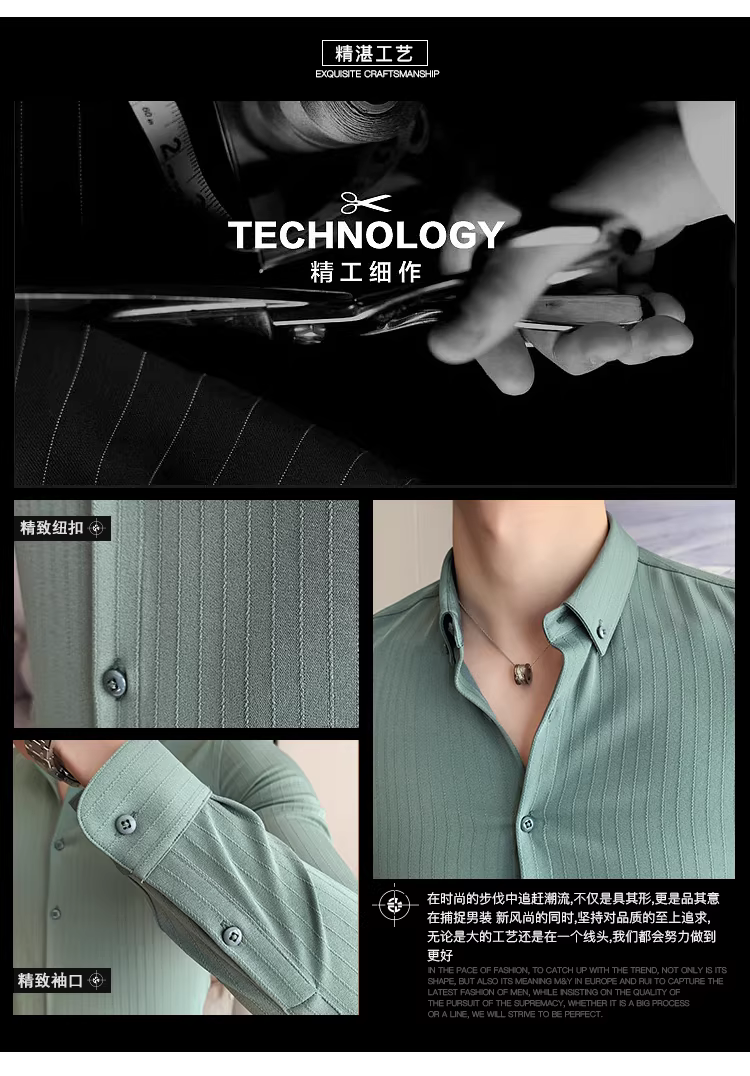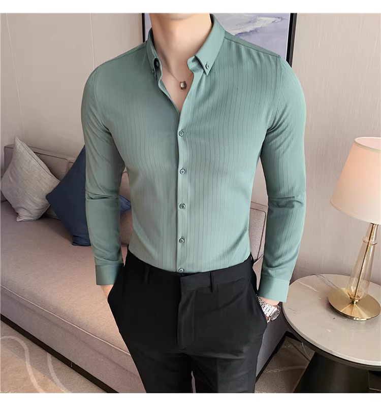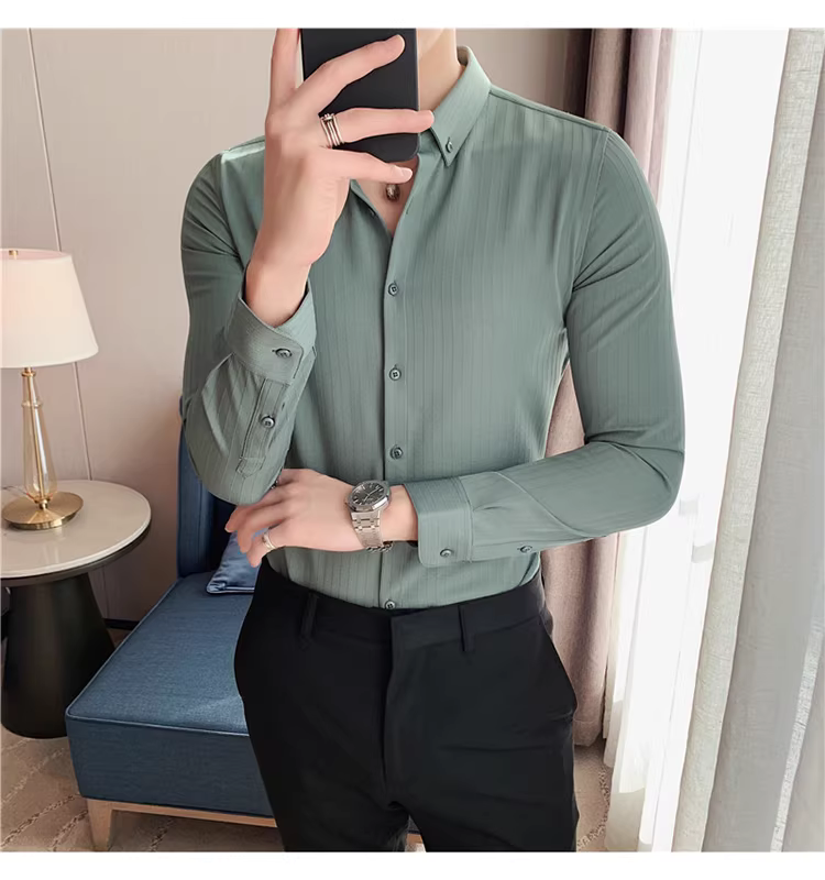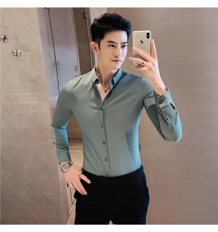 - Áo sơ mi nam dài tay kẻ sọc xuân thu 2024 kiểu mới phong cách Anh lịch lãm, dáng ôm, áo sơ mi công sở nam thời trang, cá tính