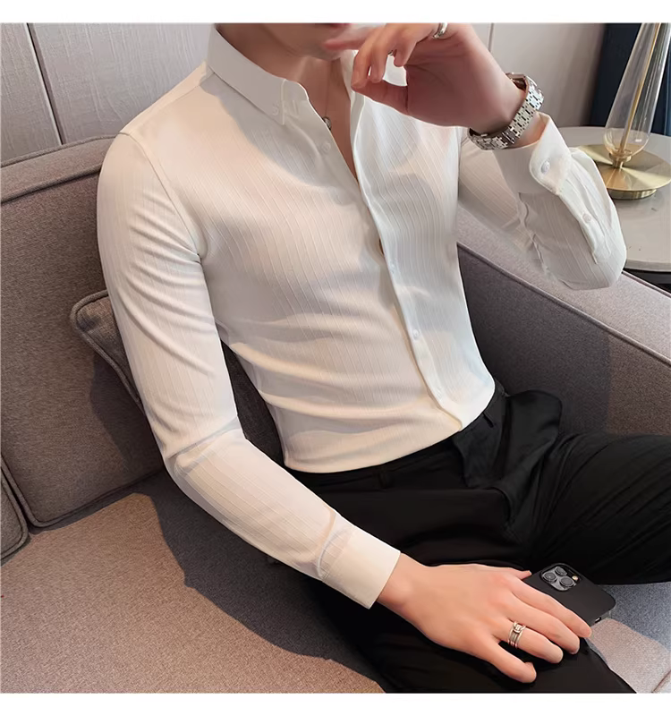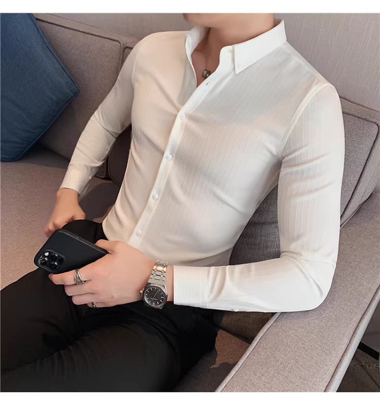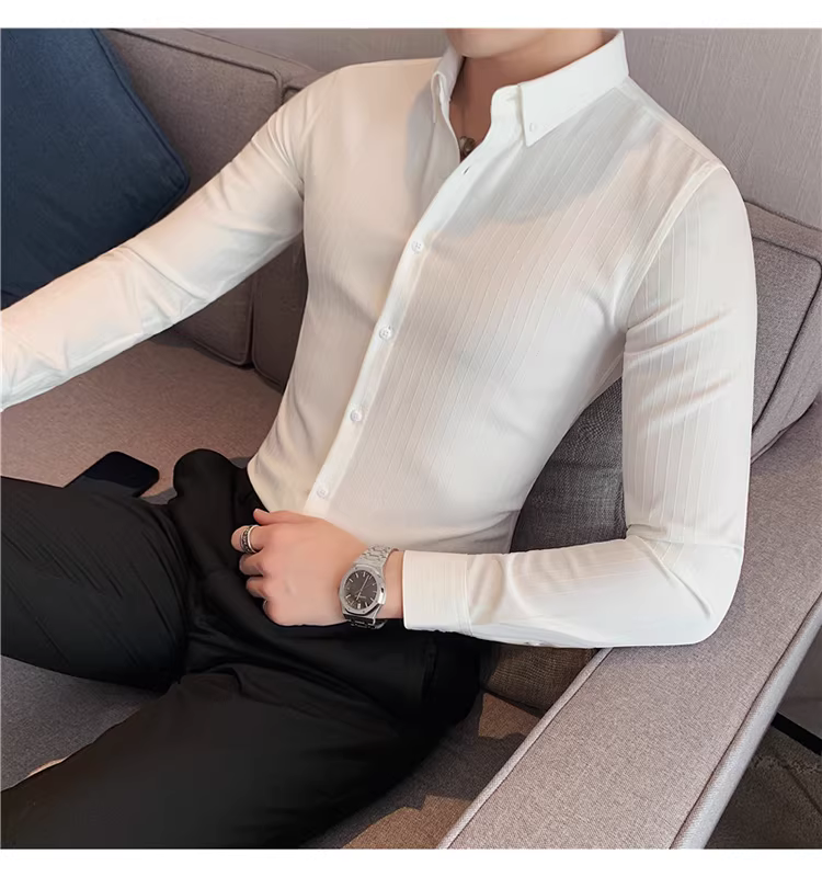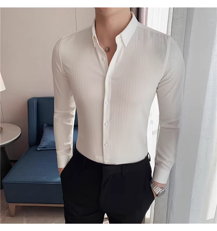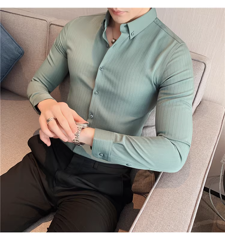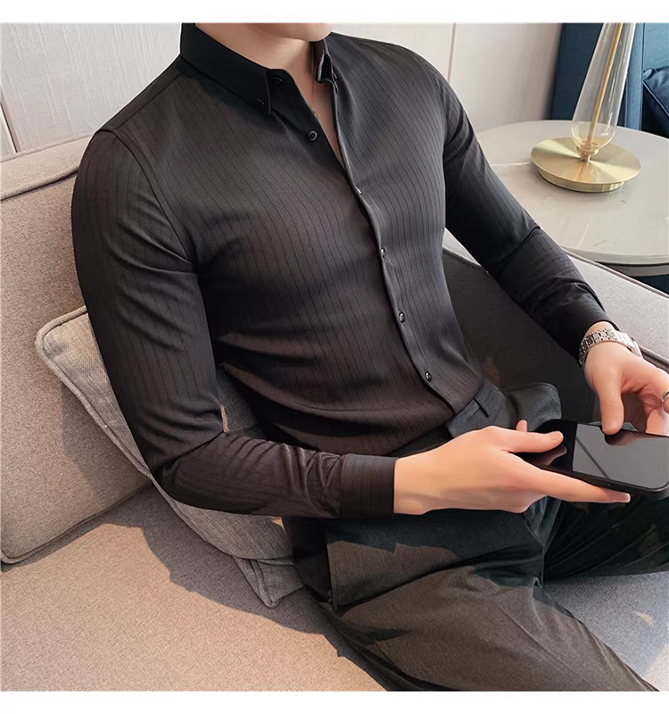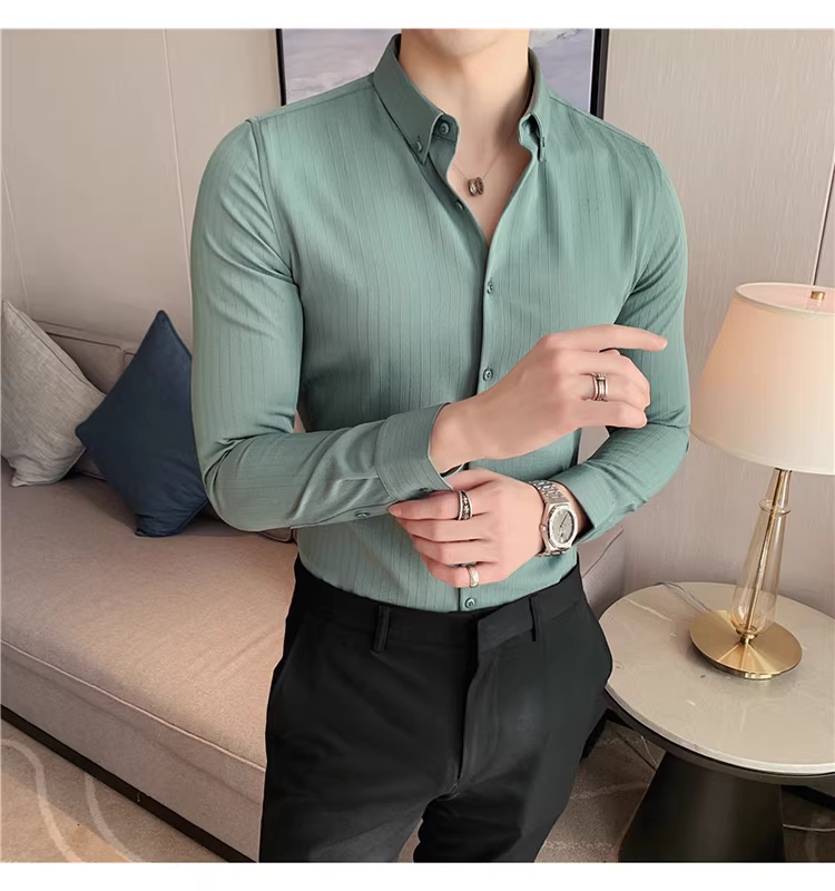 - Áo sơ mi nam dài tay kẻ sọc xuân thu 2024 kiểu mới phong cách Anh lịch lãm, dáng ôm, áo sơ mi công sở nam thời trang, cá tính