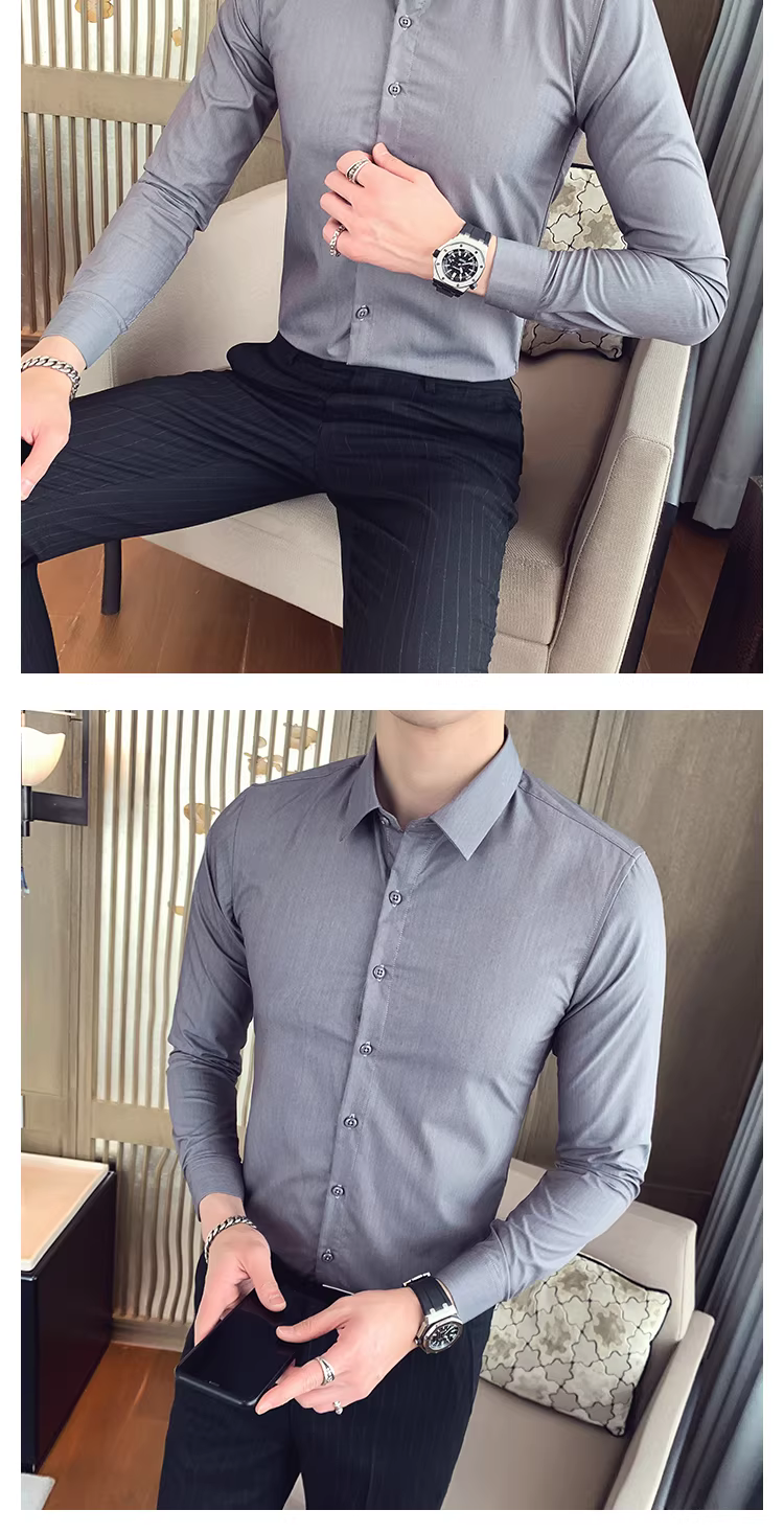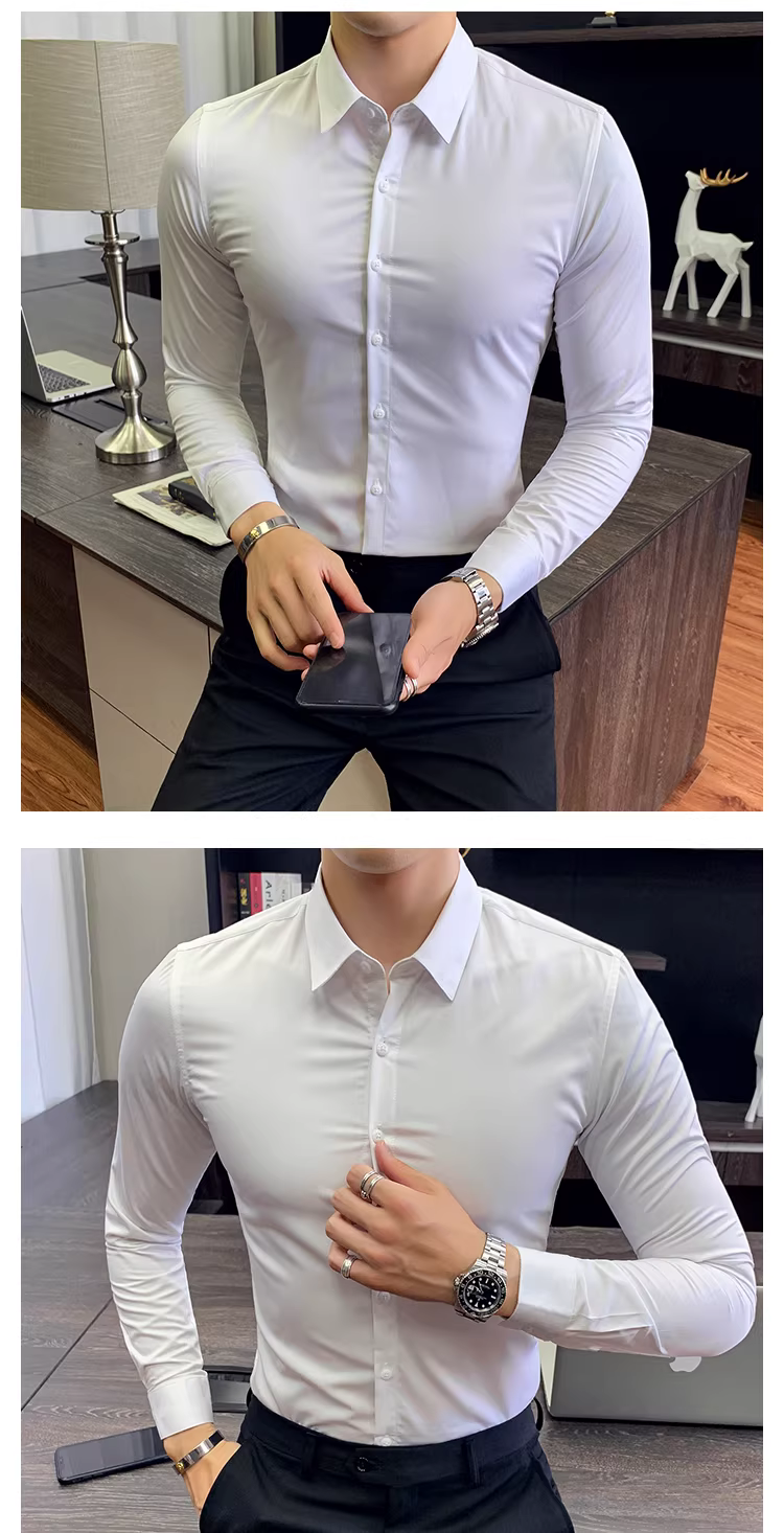 - Áo sơ mi nam dài tay mới mùa xuân thu, áo sơ mi trắng dáng ôm hợp thời trang phong cách Hàn Quốc, trang phục công sở nam, quần áo nam phong cách Anh