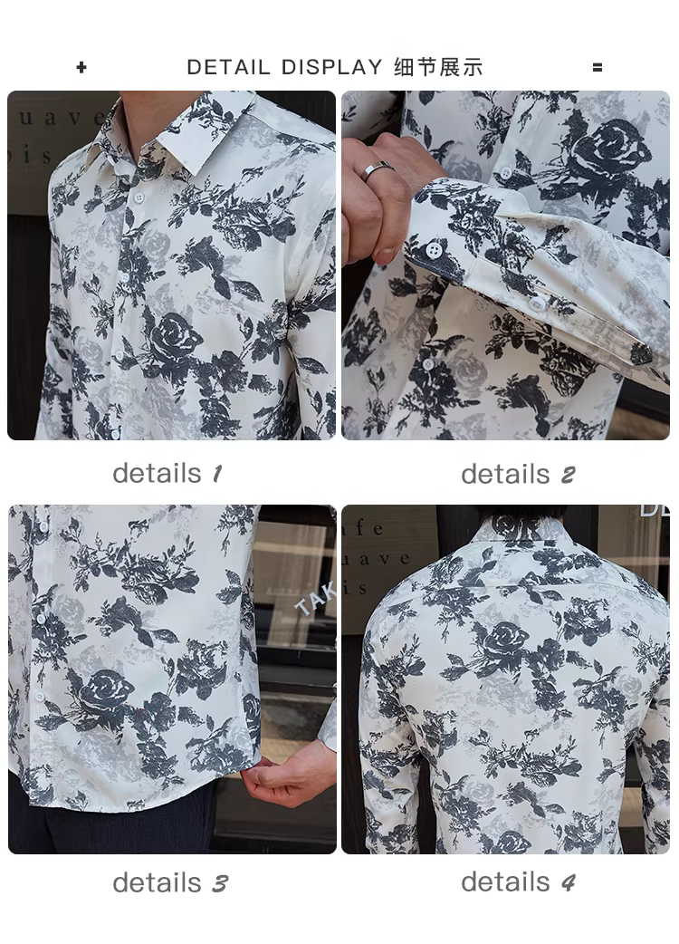 - Áo sơ mi nam in hình đẹp, tay dài, kiểu mới xuân thu 2025, thời trang, ôm dáng, lịch lãm, phong cách công sở giản dị, áo dành cho nhà tạo mẫu tóc