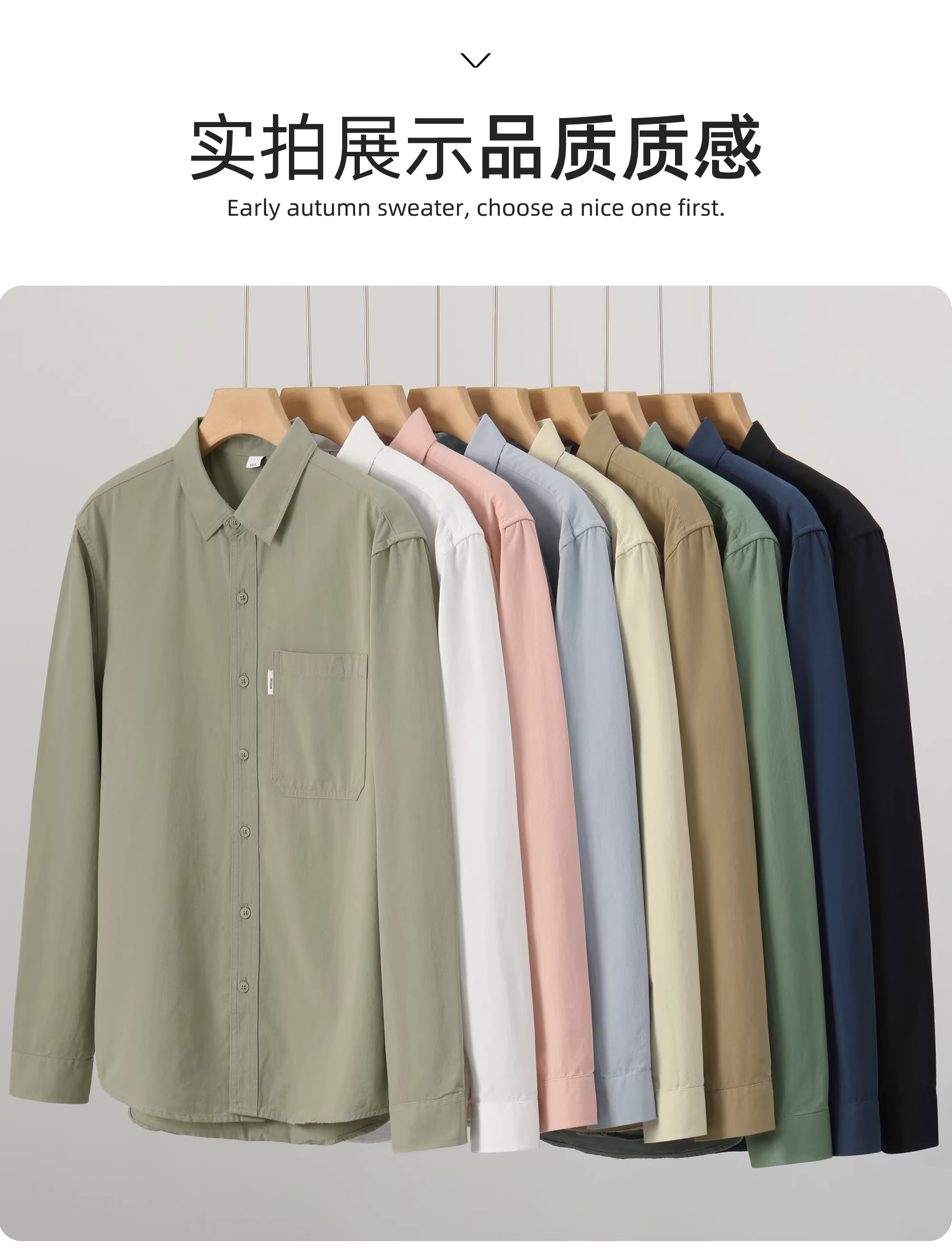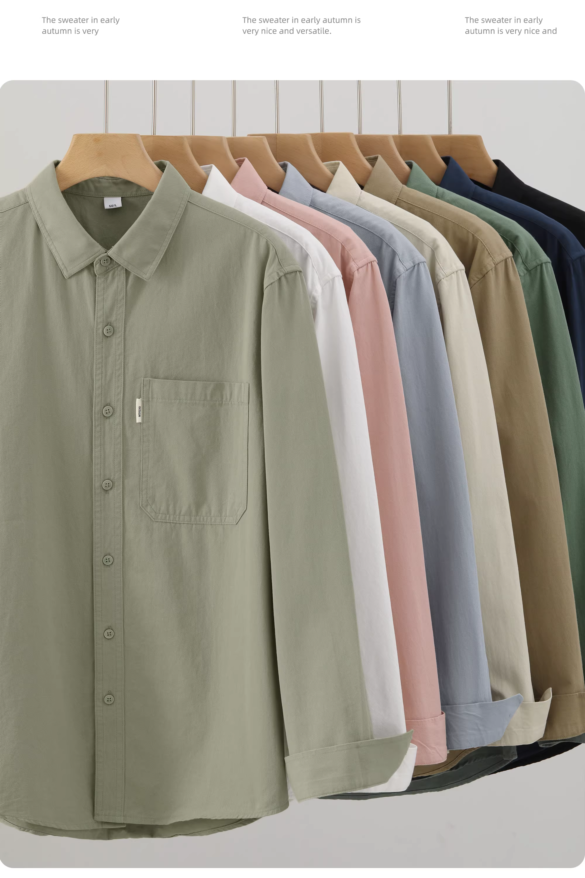 Áo sơ mi nam JIEYI chất liệu cotton nguyên chất, kiểu dáng đơn giản, màu trơn, đã qua xử lý giặt mềm, có một túi, cổ sơ mi, kiểu dáng mới đa năng.