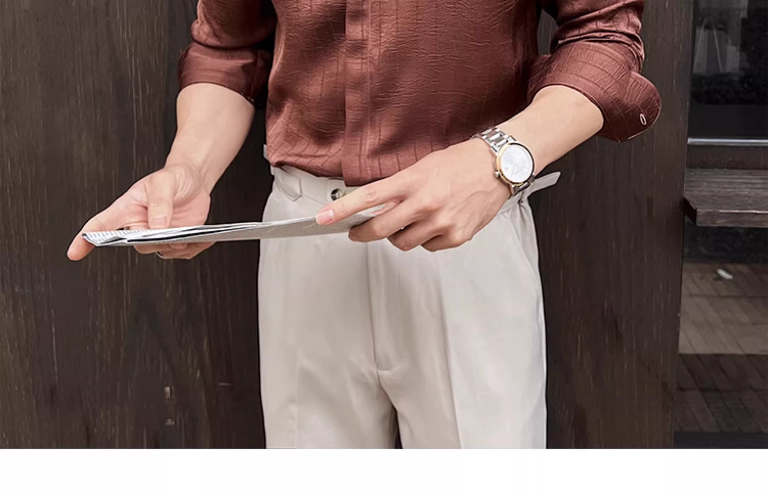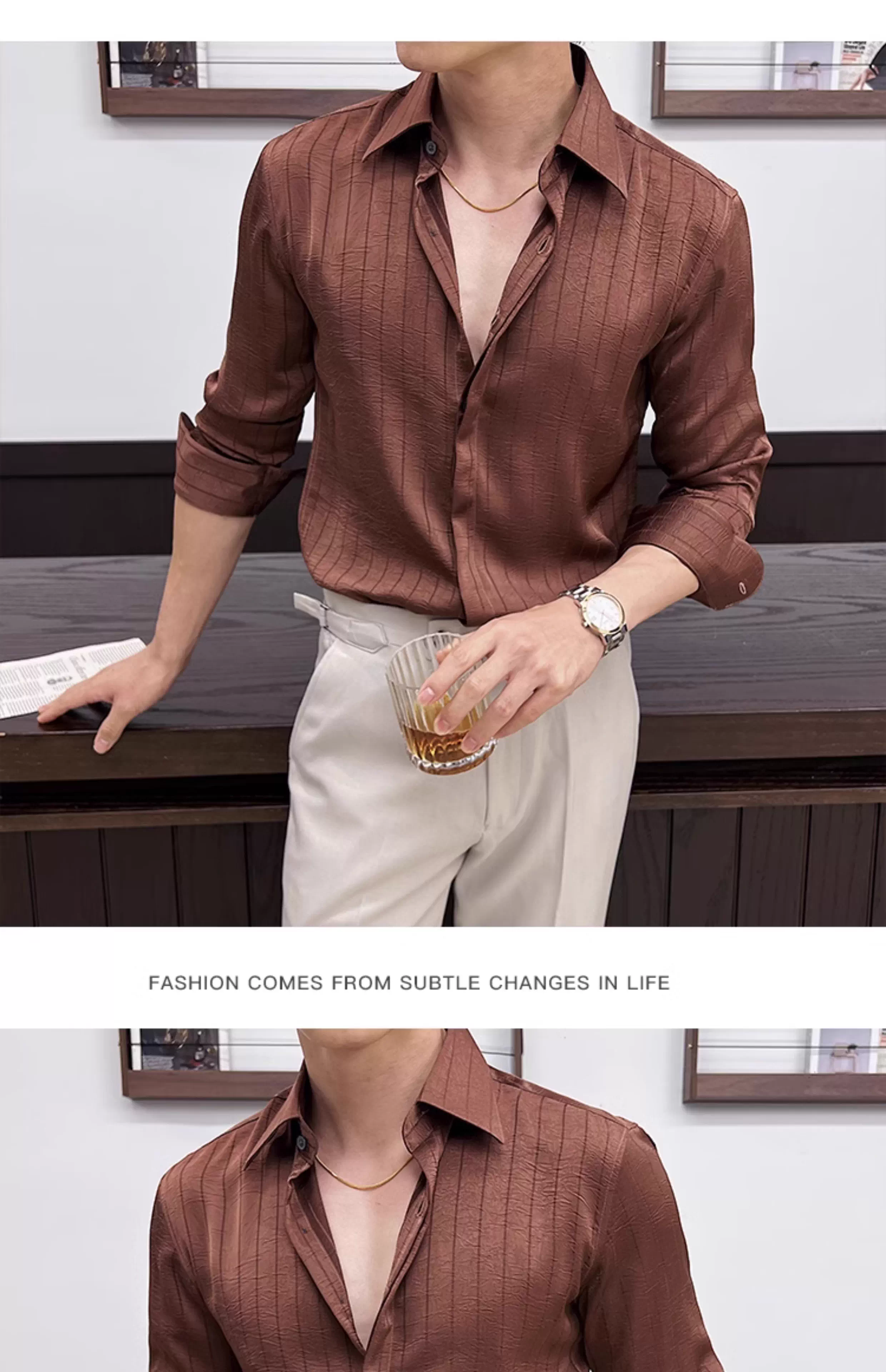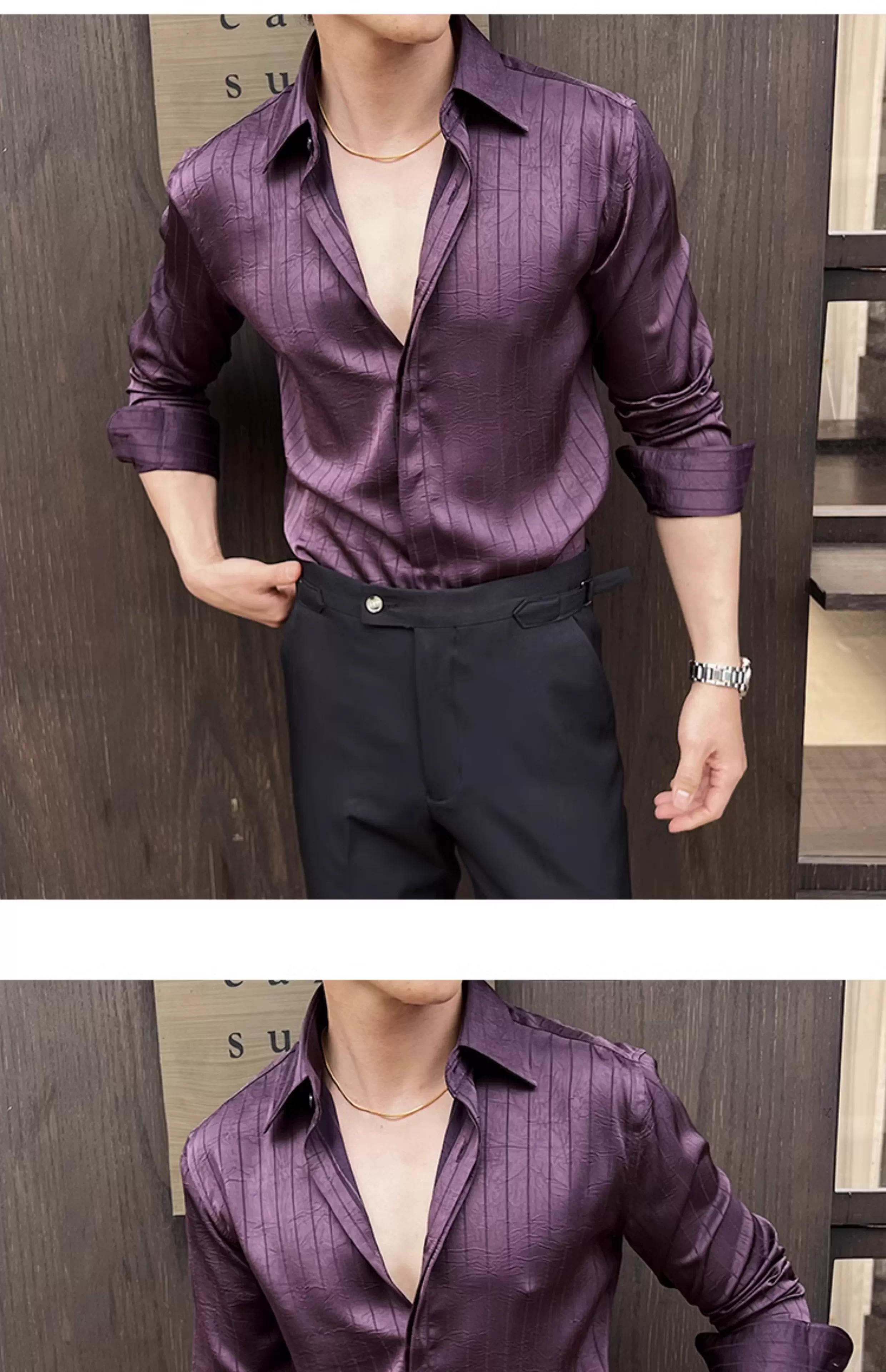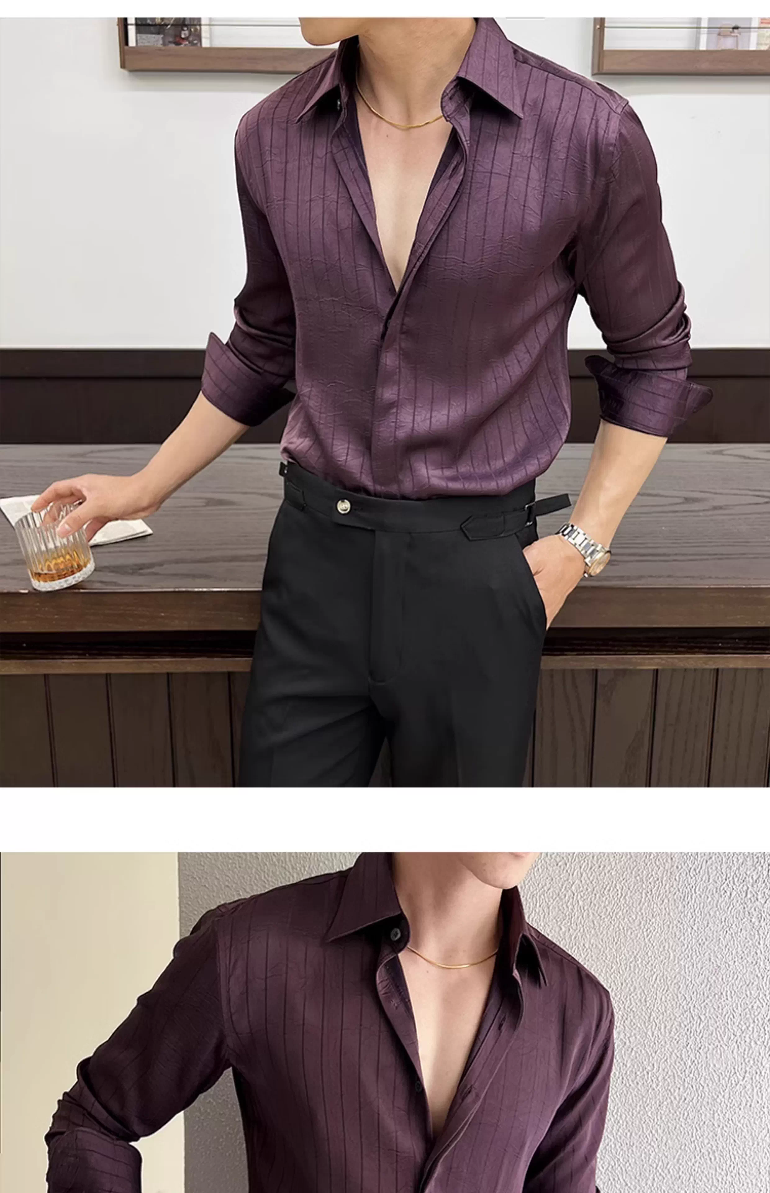 - Áo sơ mi nam kẻ sọc xếp ly dáng dài tay mùa xuân 2025 thiết kế cao cấp mới phong cách thường ngày công sở dáng ôm