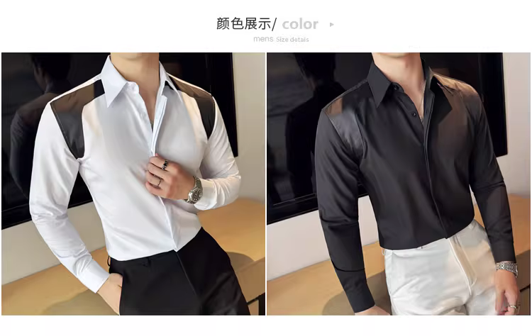 - Áo sơ mi nam kiểu Anh, cổ rộng, phối nhiều chất liệu, tay dài, xu hướng thời trang cao cấp, dáng ôm, lịch lãm, áo sơ mi casual cao cấp