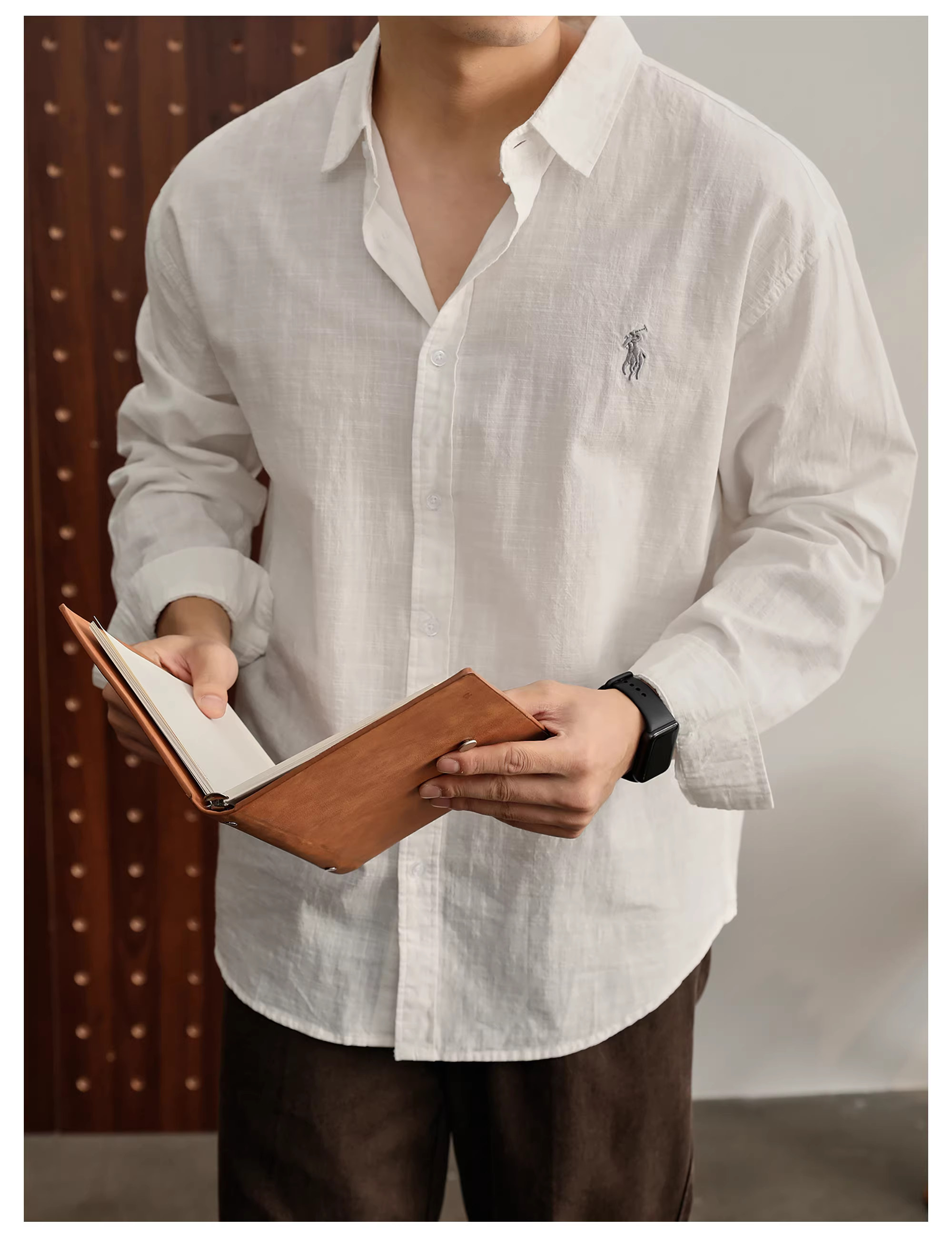 - Áo sơ mi nam LUUD cao cấp, kiểu dáng thời trang, chất liệu cotton nguyên chất, phong cách tối giản Hàn Quốc, dáng rộng, đơn hàng khuy, tay áo trễ vai, hợp xu hướng