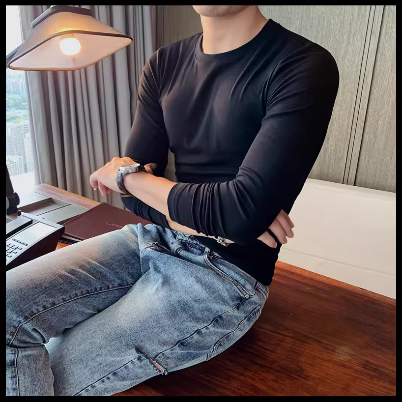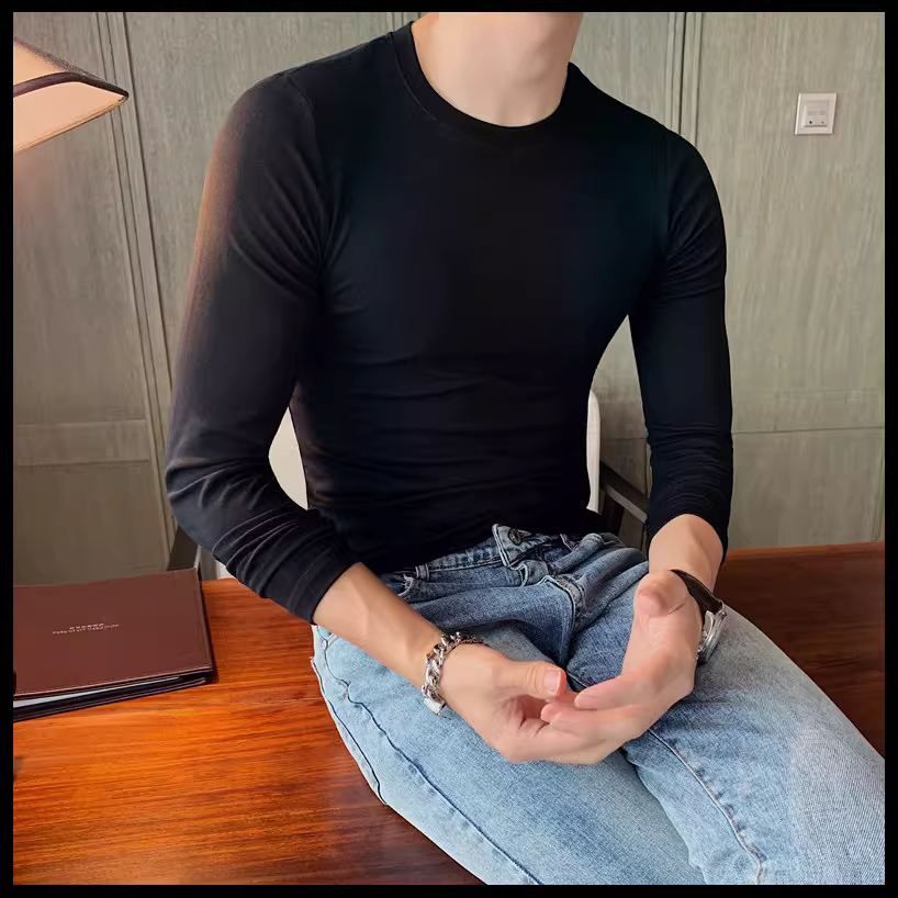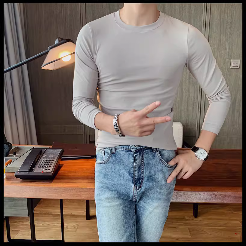 - Áo sơ mi nam mặc mùa thu đông, áo thun nam dài tay cổ tròn, áo thun màu trơn co giãn ôm sát phong cách Hàn Quốc, áo thun mặc bên trong.