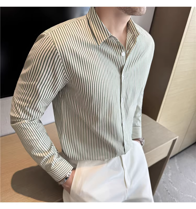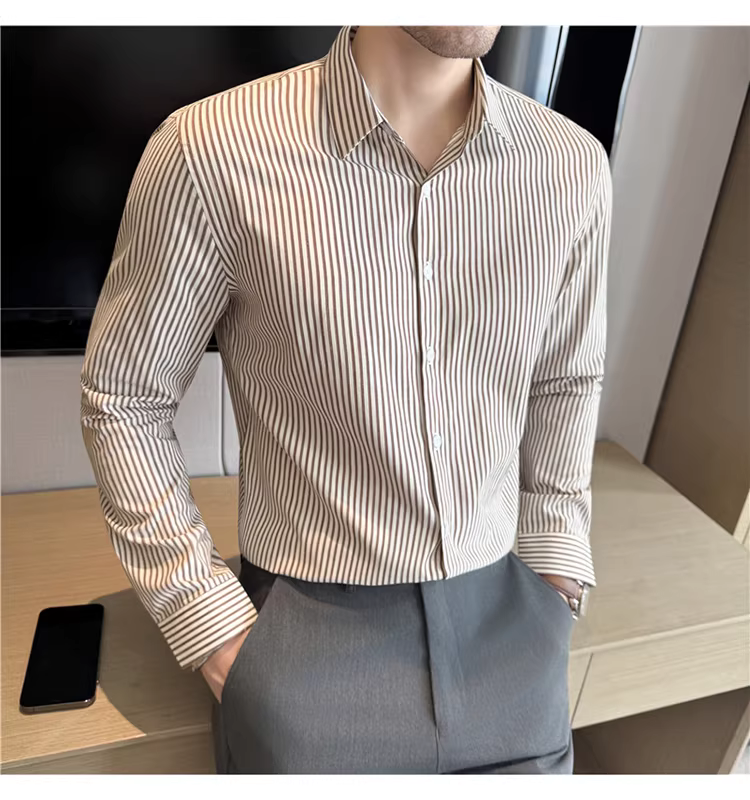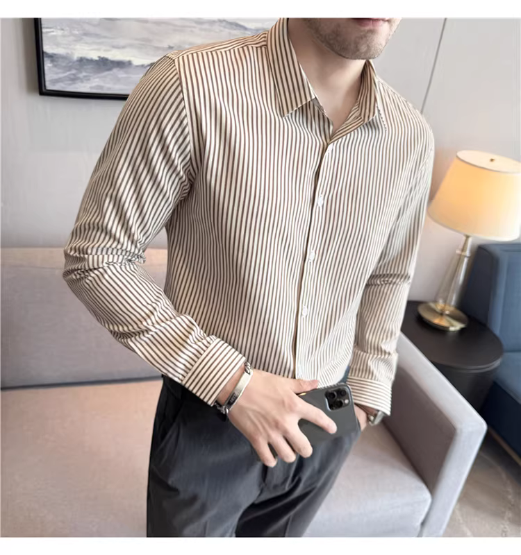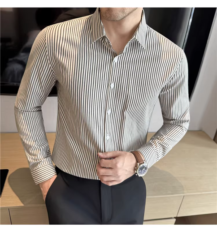 - Áo sơ mi nam sọc nhuộm sợi, tay dài, kiểu mới thu đông 2025, phong cách thường ngày, đa năng, ôm dáng, lịch sự, không nhăn, dễ chăm sóc
