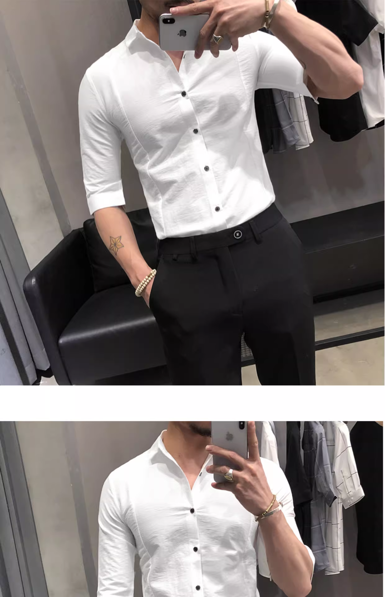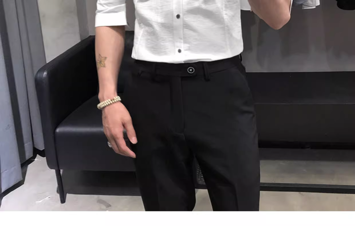 - Áo sơ mi nam tay ba phần mùa hè, áo sơ mi nam ngắn tay chất liệu lụa đá mỏng, kiểu dáng ôm body màu trắng, thiết kế cao cấp.